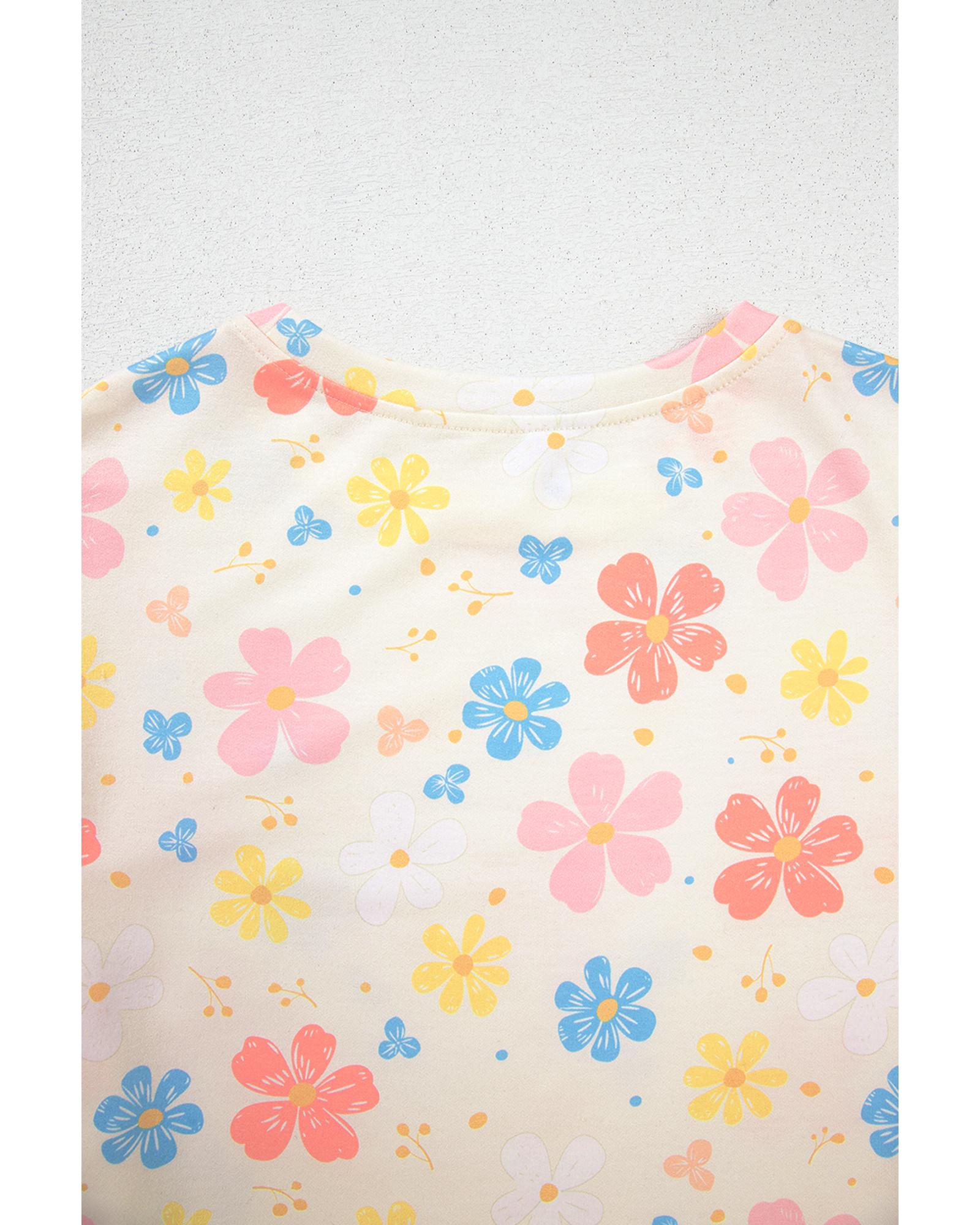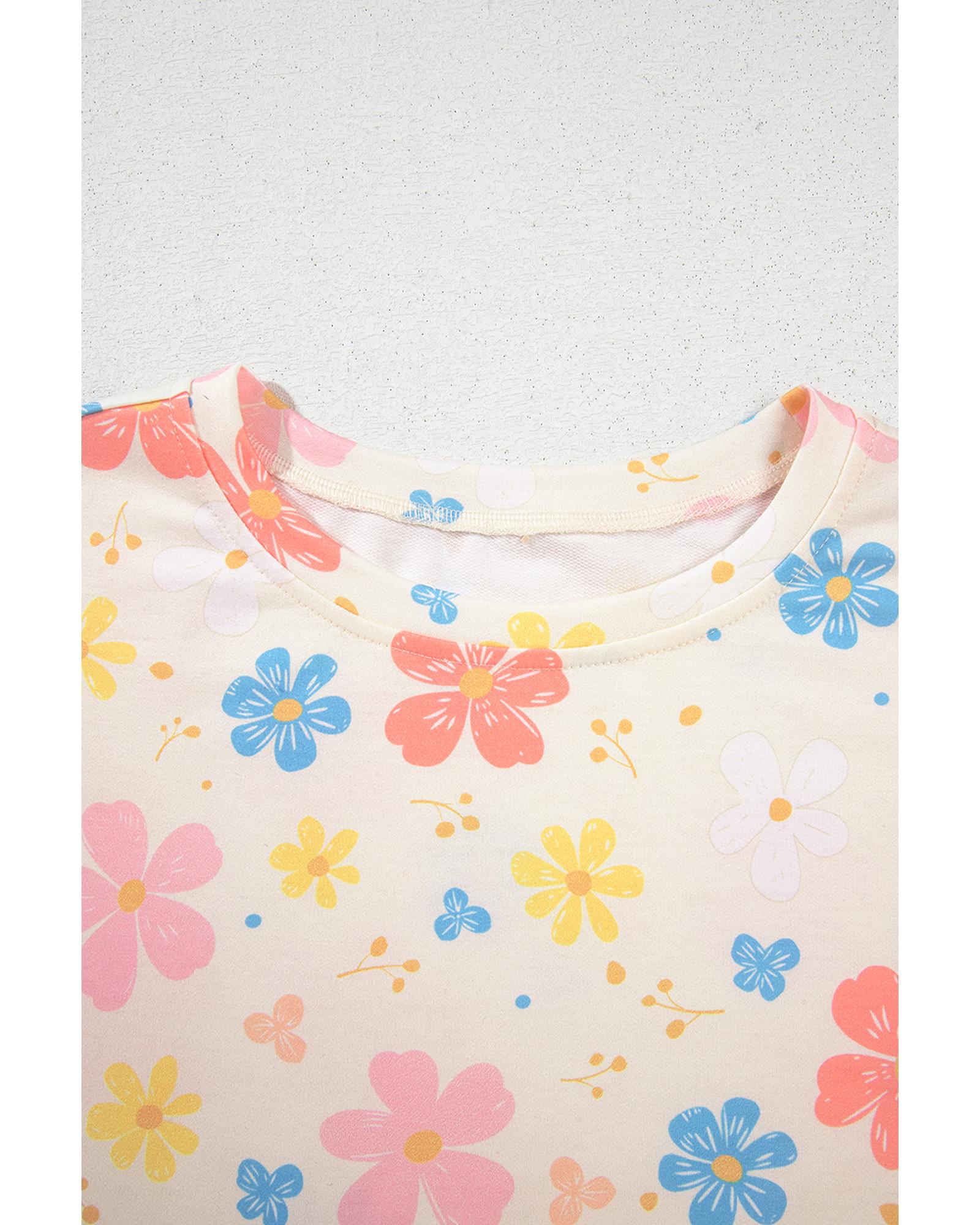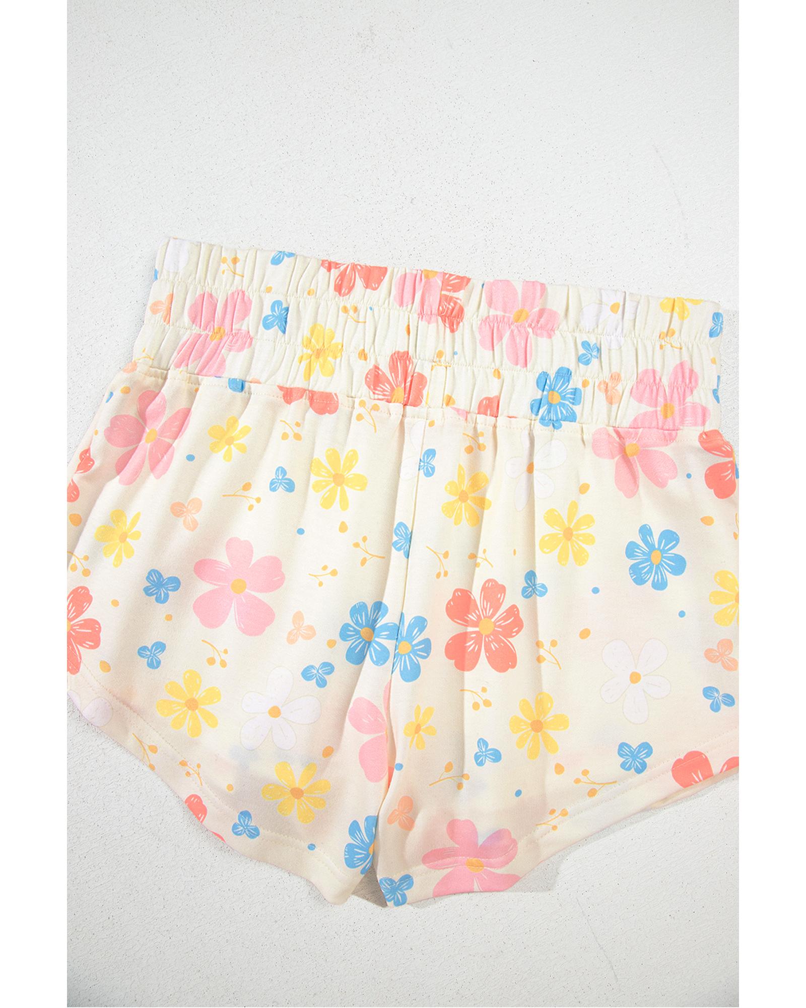 Apricot Floral Print Crop Top Wide Leg Short Set – M