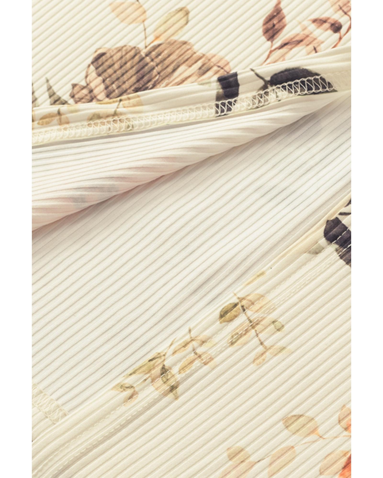 Apricot Floral Print Ribbed Knit Slim Fit Cardigan – L