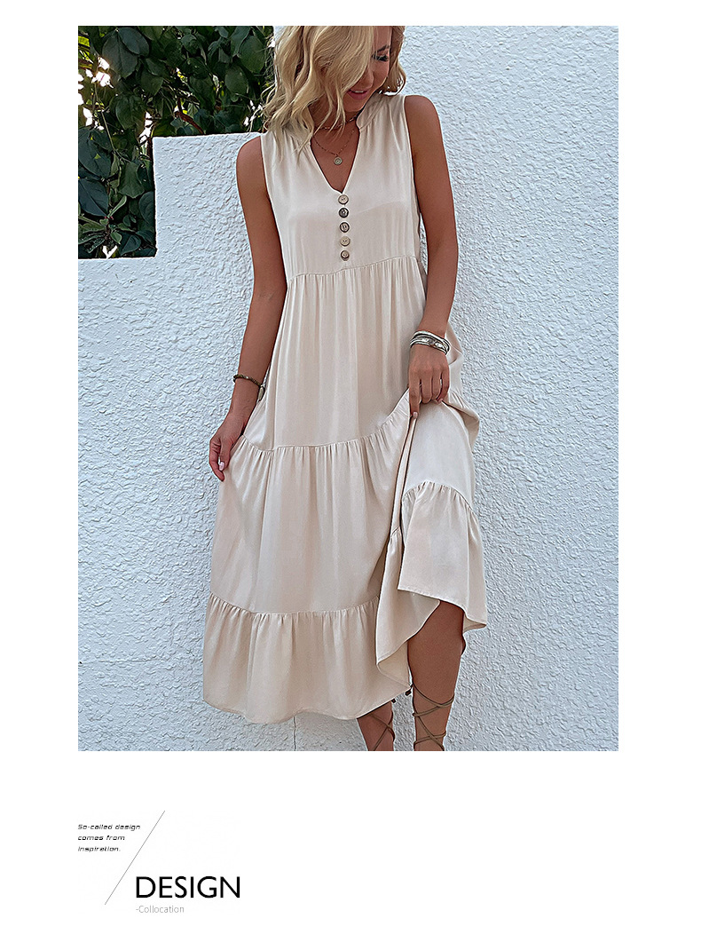 Apricot Flowy Sleeveless Midi Dress – Sleeveless solid sundress with decorative buttons Size M