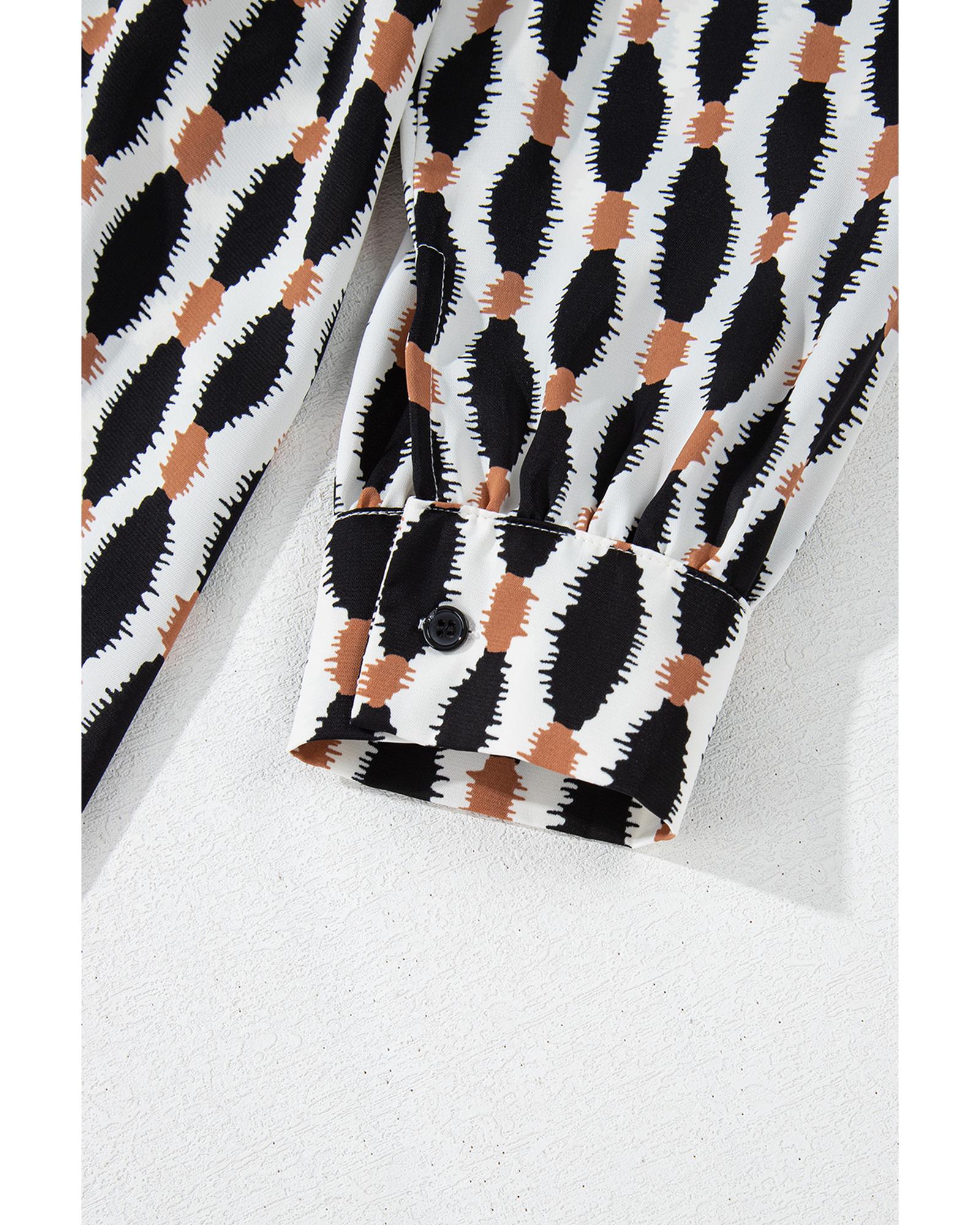 Apricot Geometric Print Collared V Neck Plus Size Mini Dress – 4X
