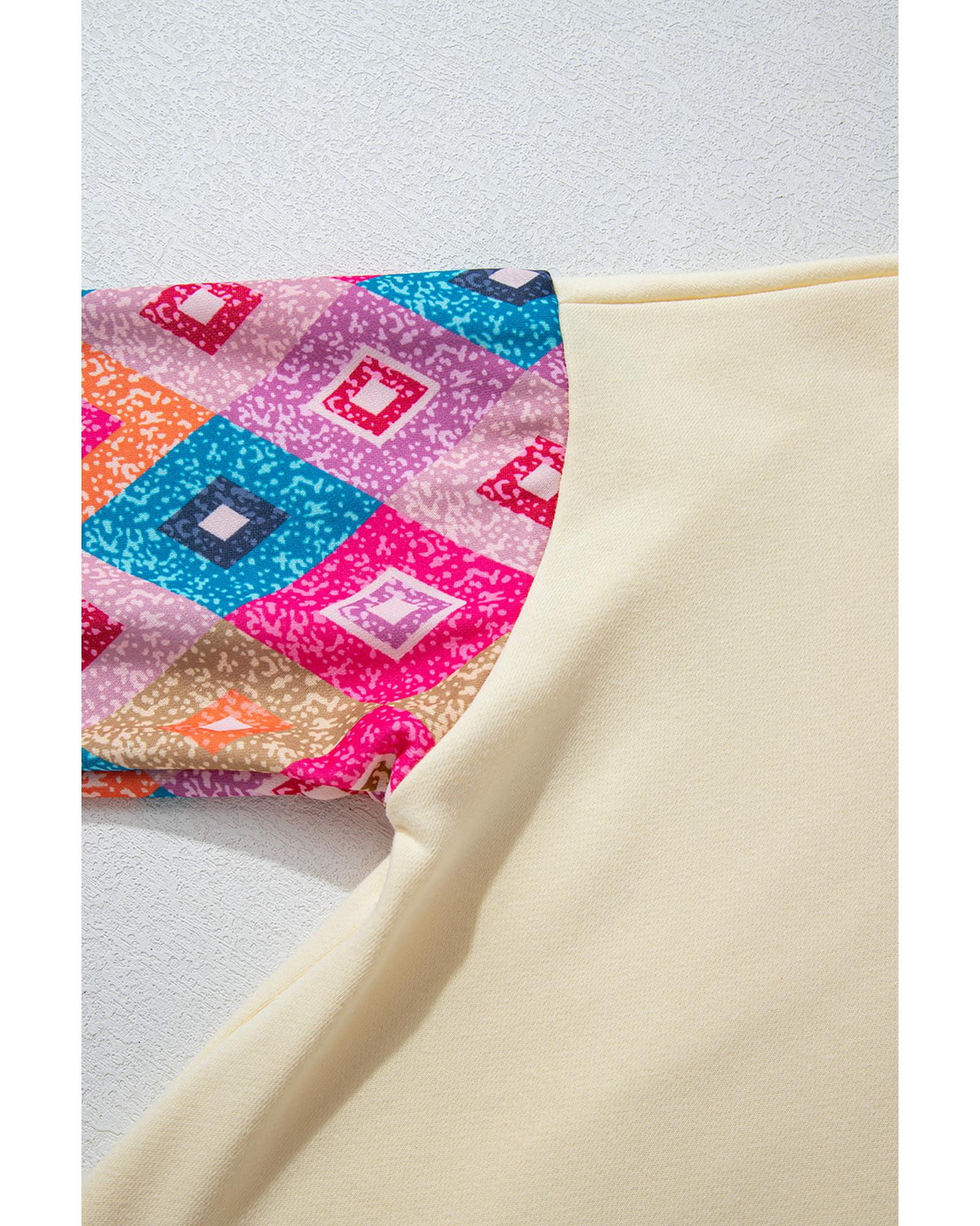 Apricot Geometric Printed Patchwork Long Sleeve Round Neck Top – L