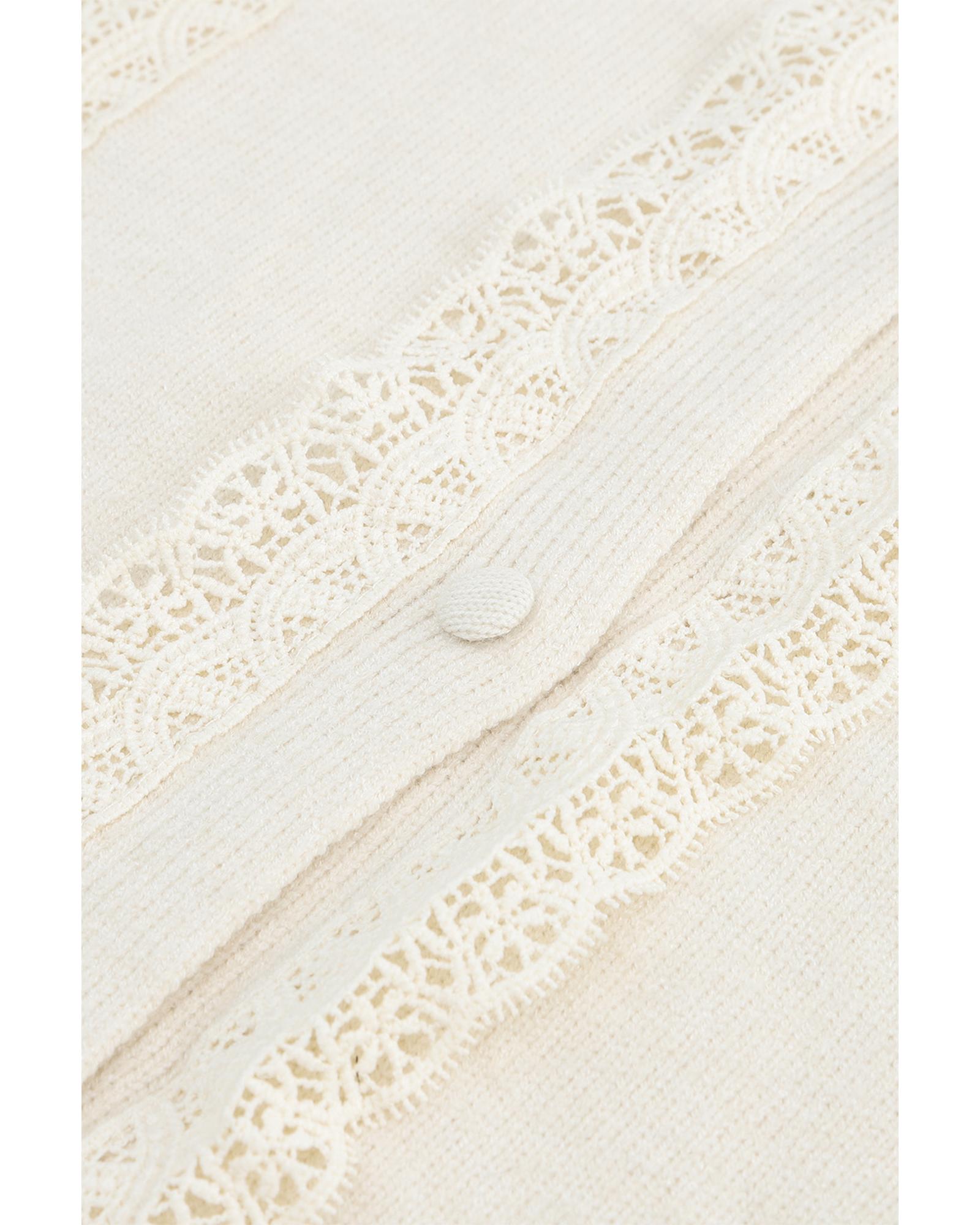 Apricot Lace Trim Ribbed Round Neck Button Up Cardigan – M