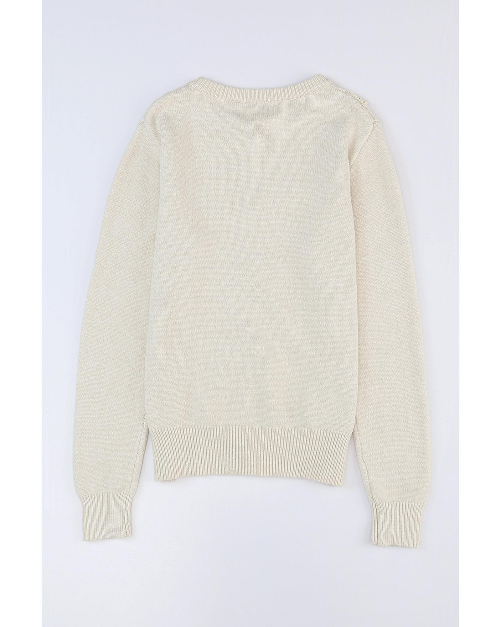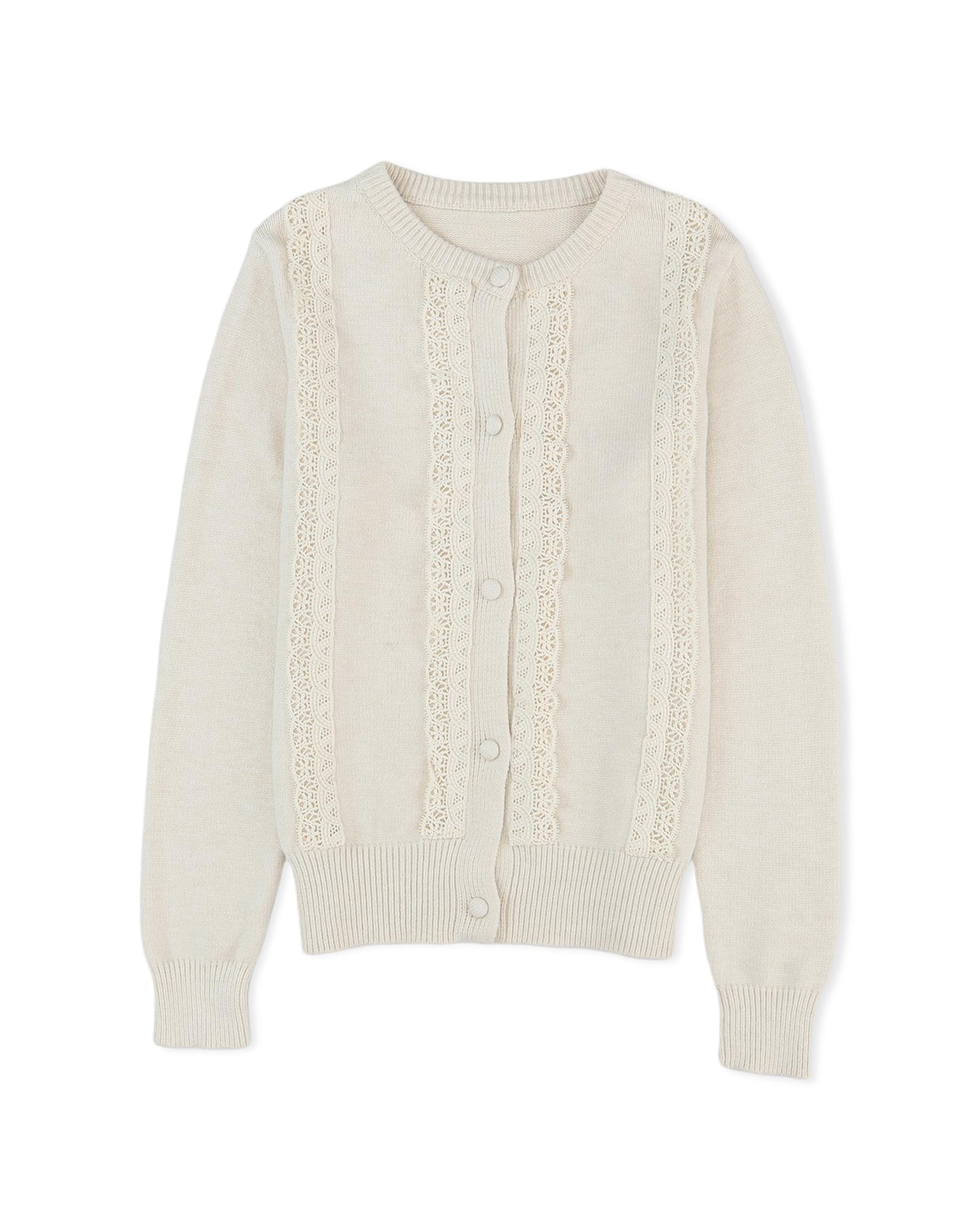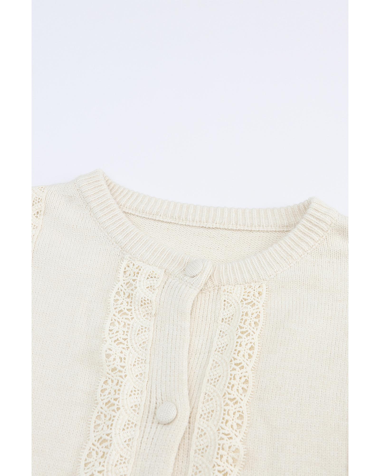 Apricot Lace Trim Ribbed Round Neck Button Up Cardigan – XL