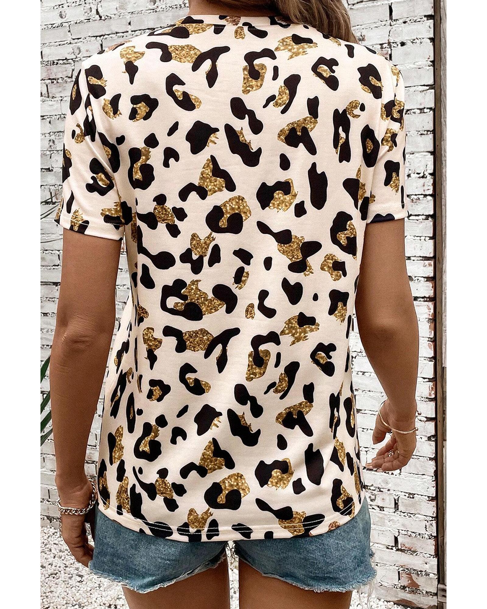 Apricot Leopard Print Round Neck Casual T Shirt – M