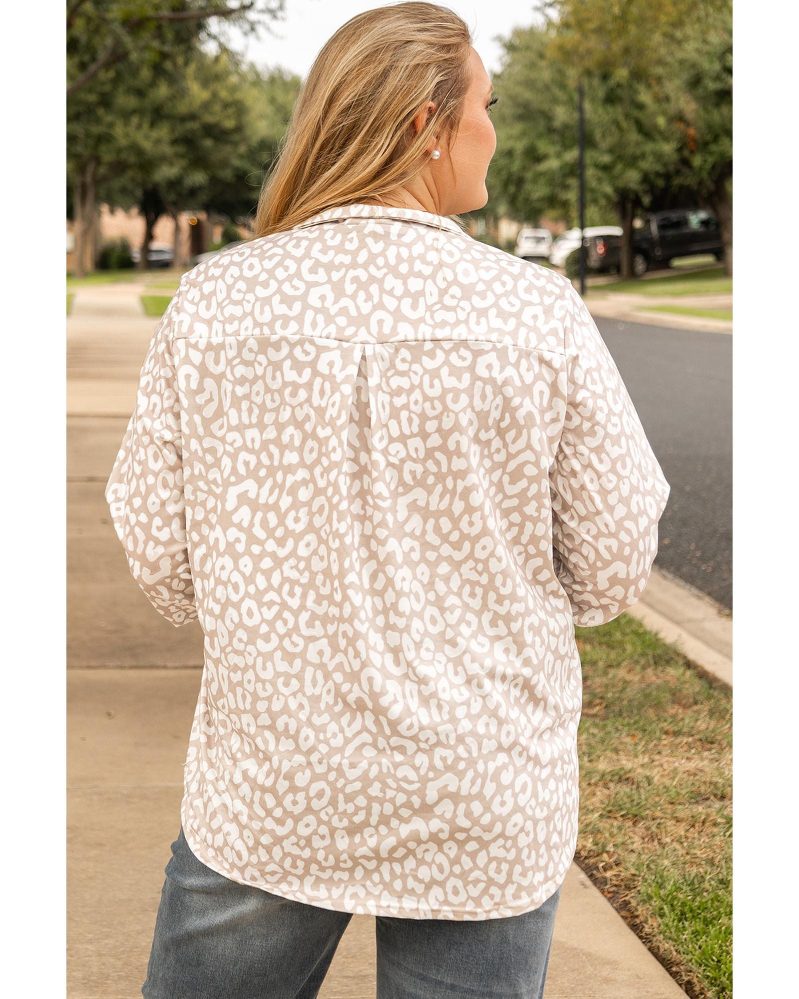 Apricot Leopard Tab Sleeve V Neck Plus Size Top - 3X Original price was: $57.99.Current price is: $30.99.