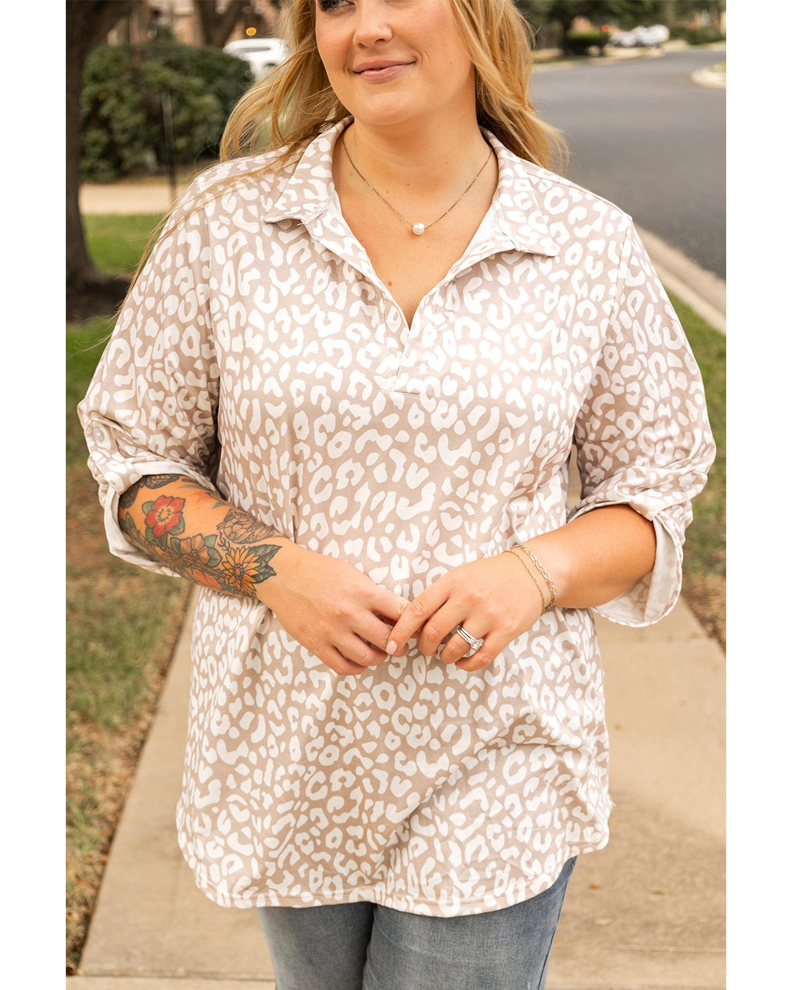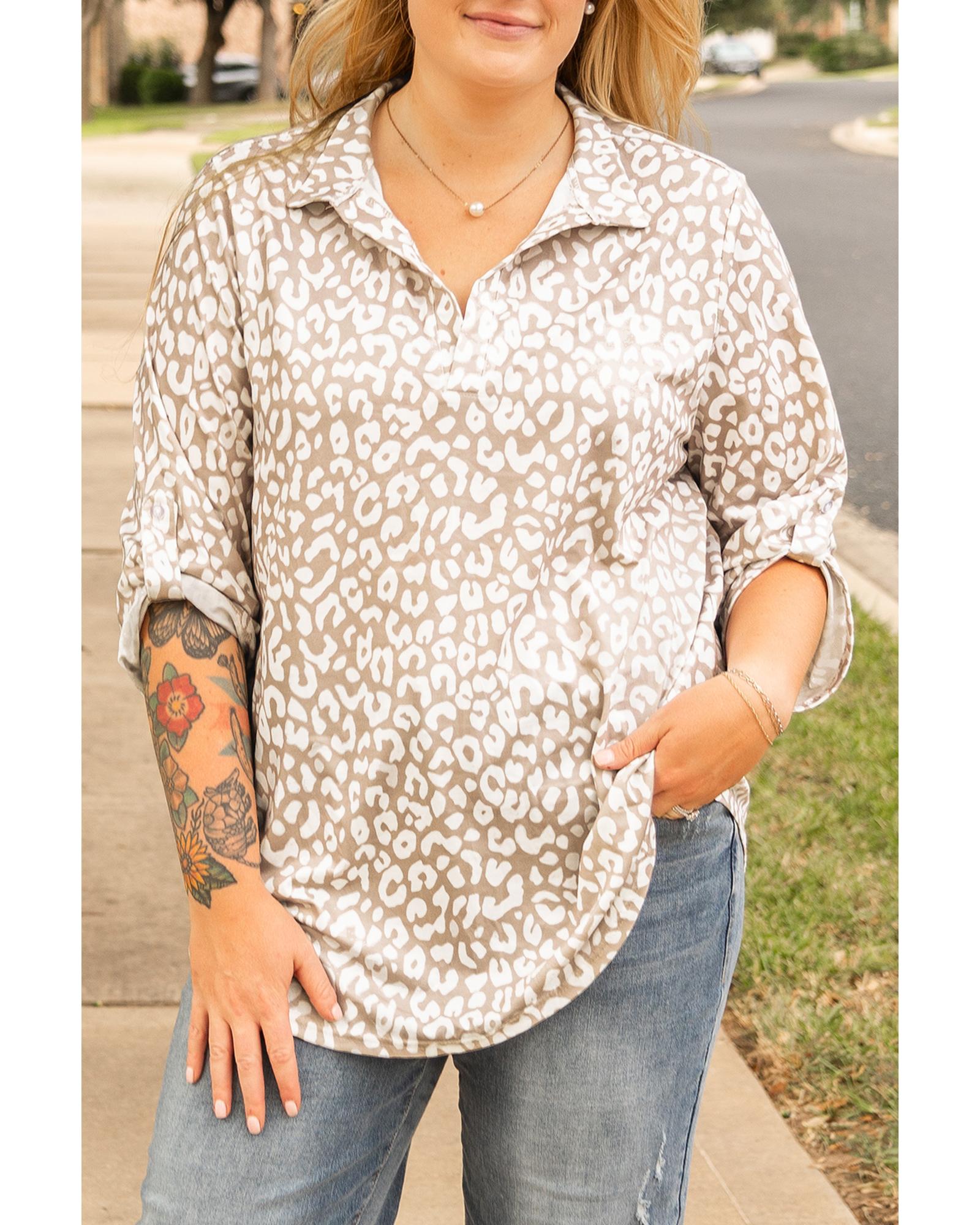 Apricot Leopard Tab Sleeve V Neck Plus Size Top - 2X Original price was: $57.99.Current price is: $30.99.