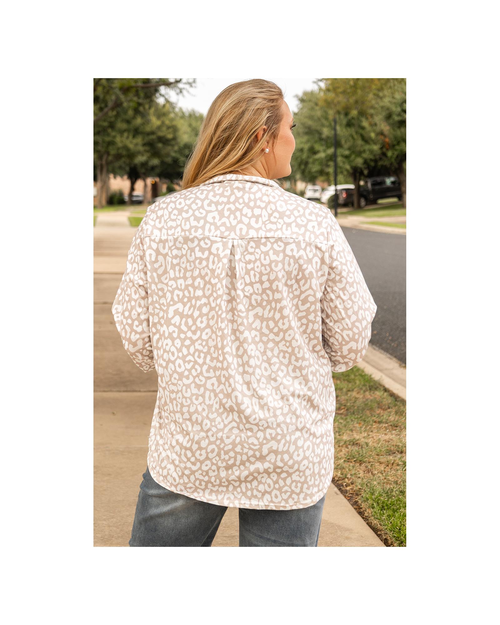 Apricot Leopard Tab Sleeve V Neck Plus Size Top – 4X
