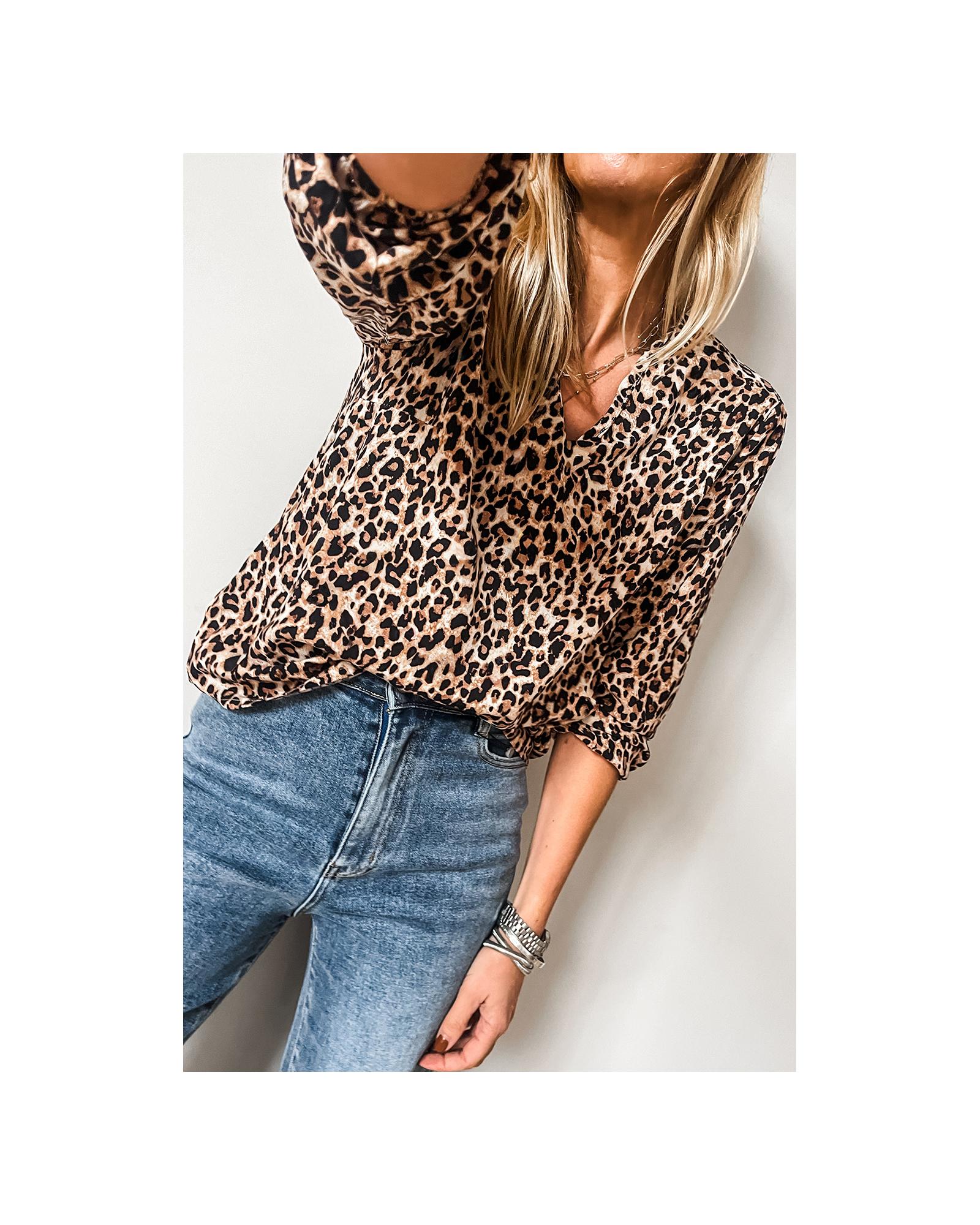 Apricot Leopard V Neck Half Sleeve Blouse – M
