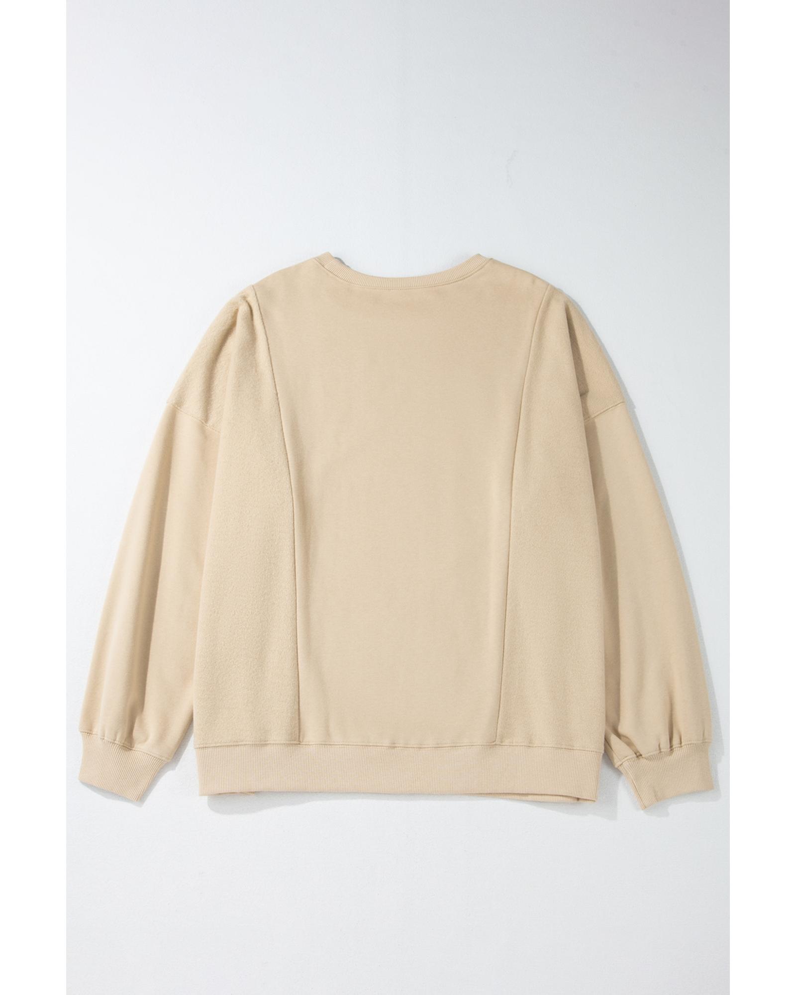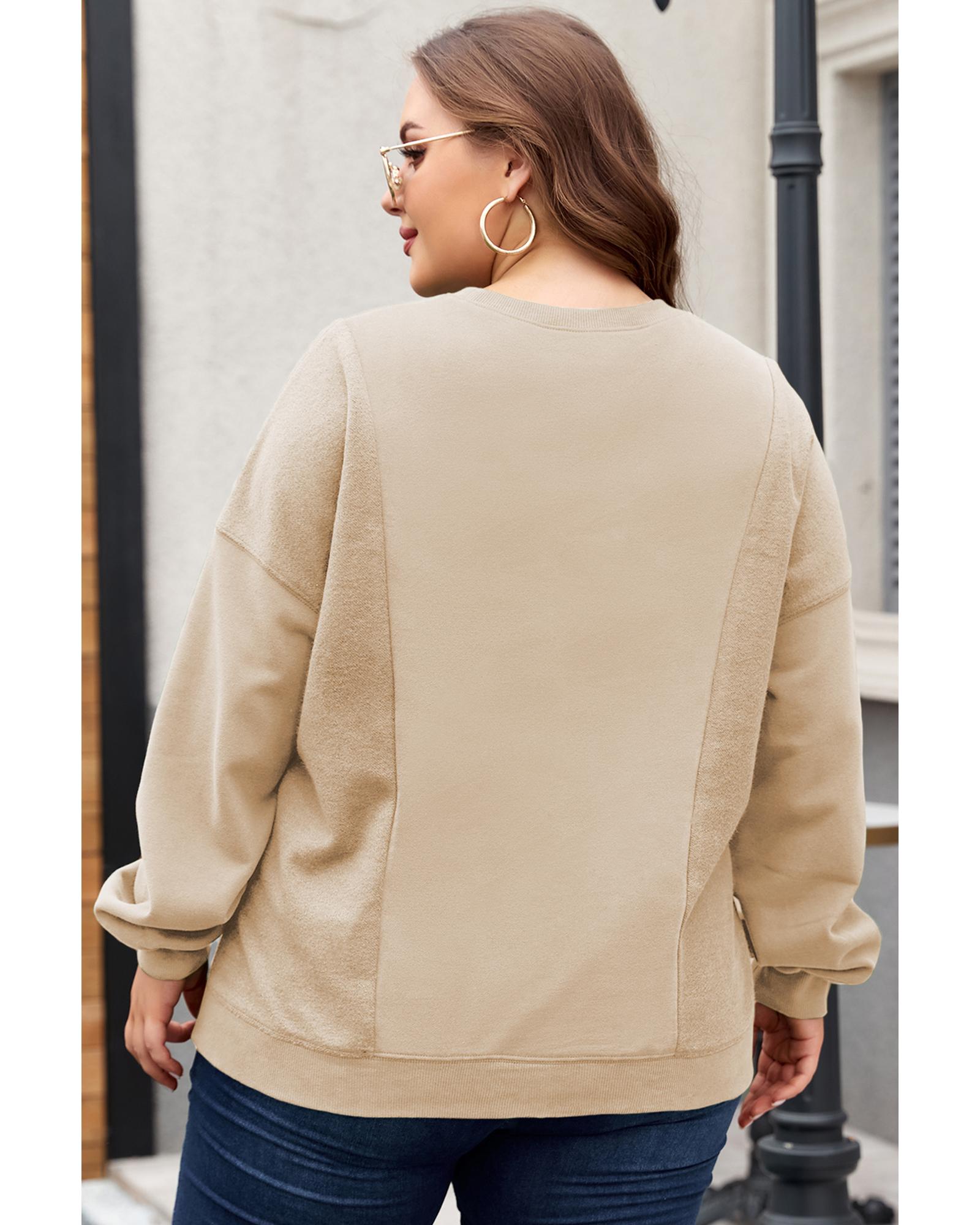 Apricot Loose Patchwork Crewneck Plus Size Sweatshirt – 1X