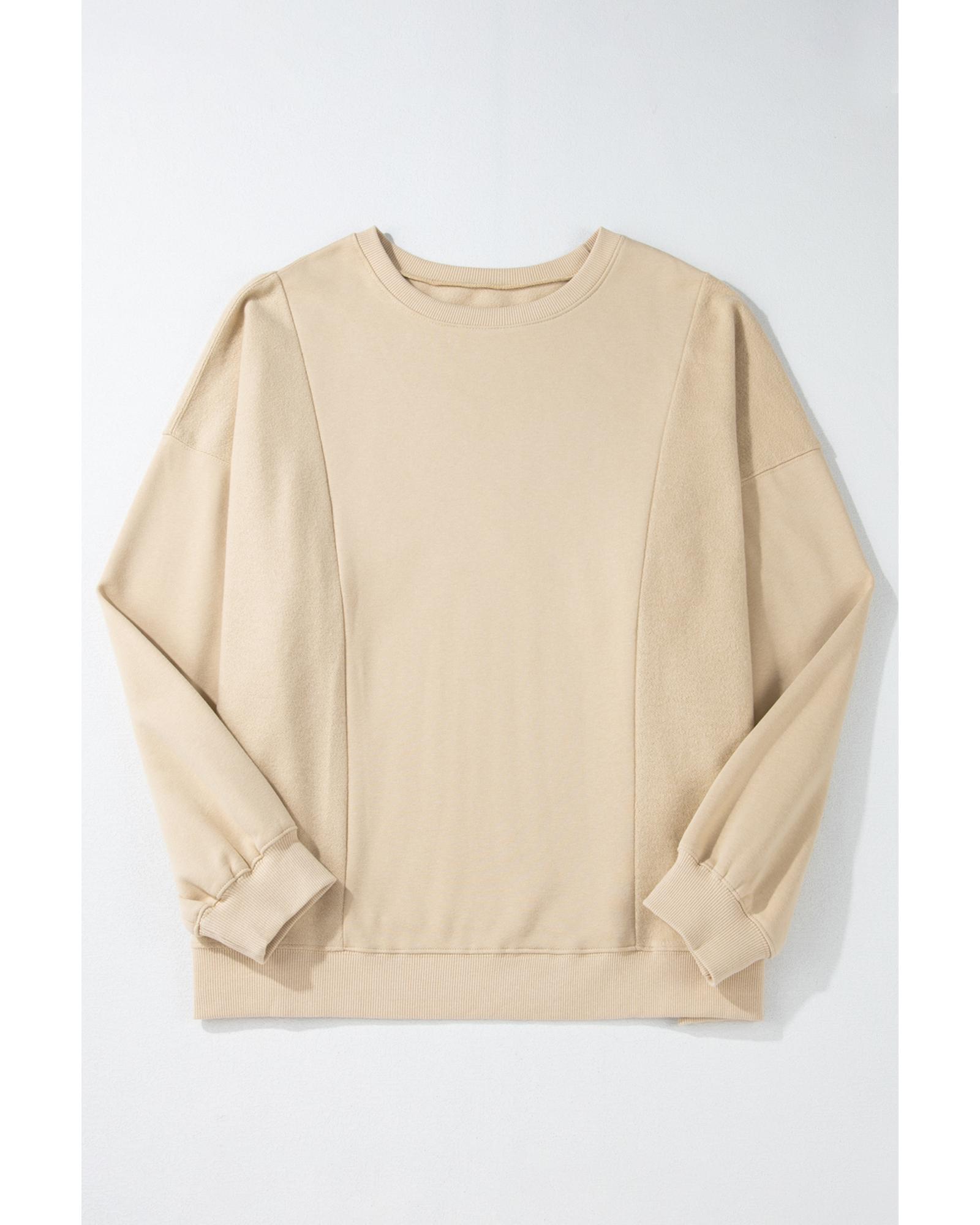 Apricot Loose Patchwork Crewneck Plus Size Sweatshirt – 2X