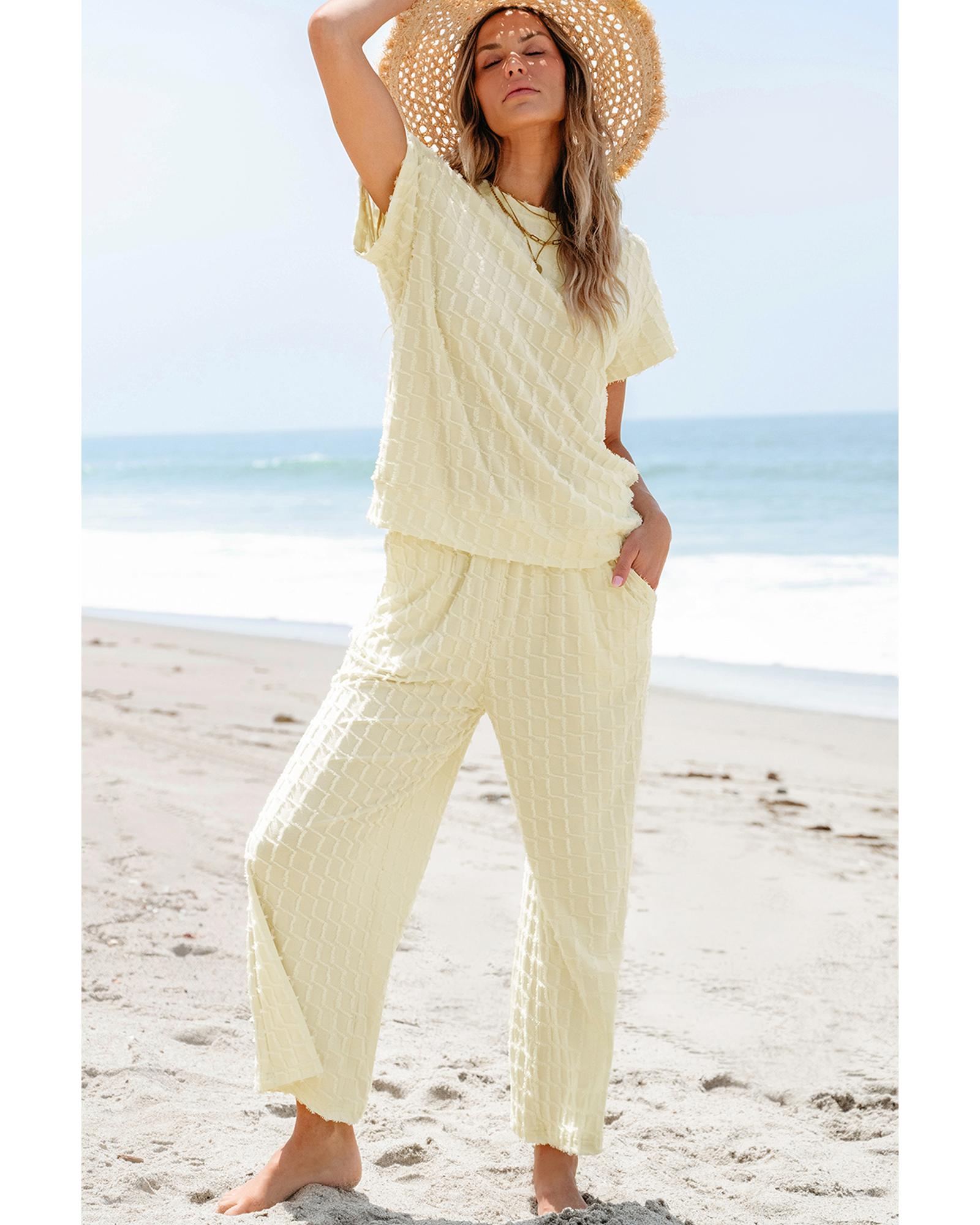 Apricot Metallic Lattice Textured Casual Two Piece Set – XL