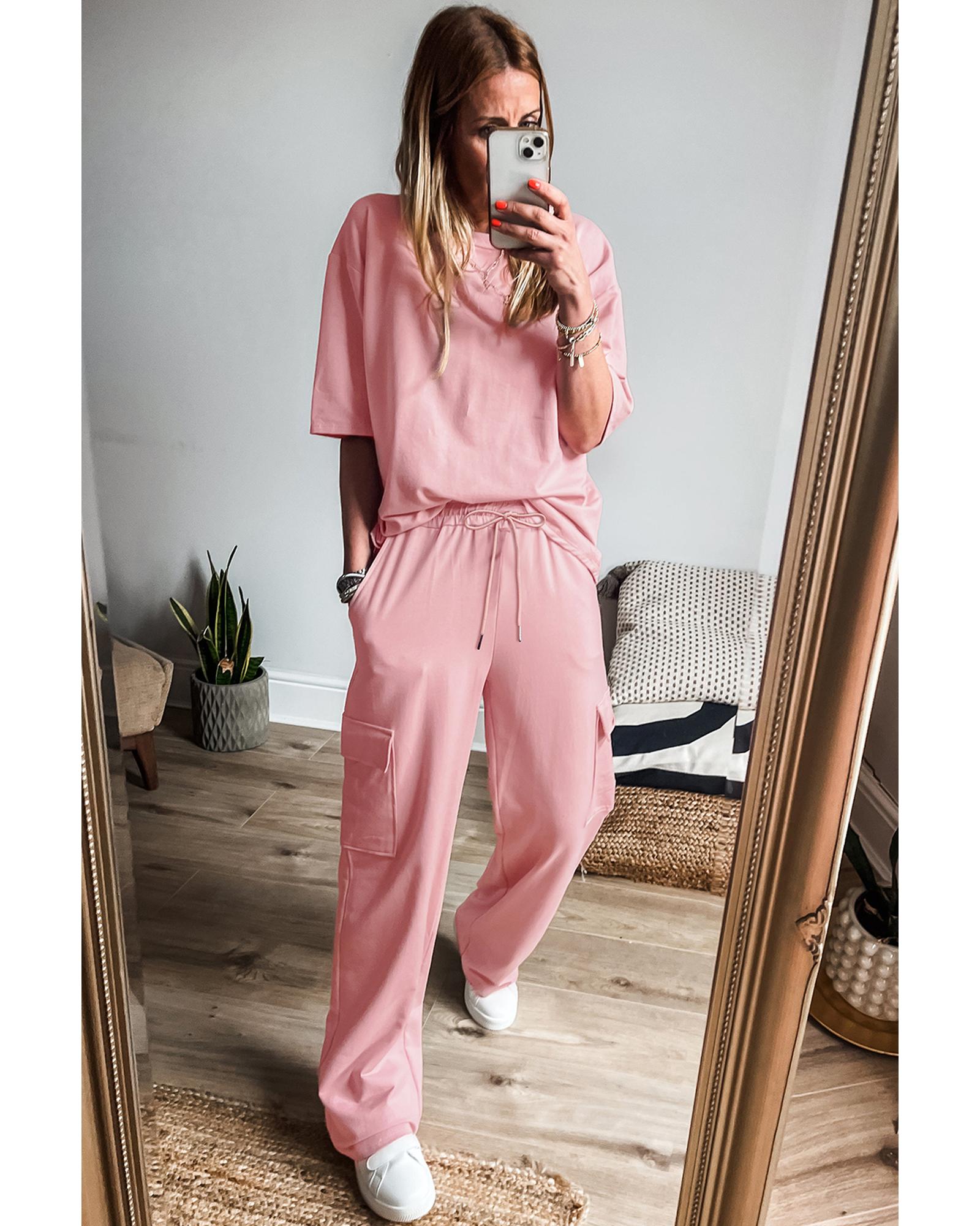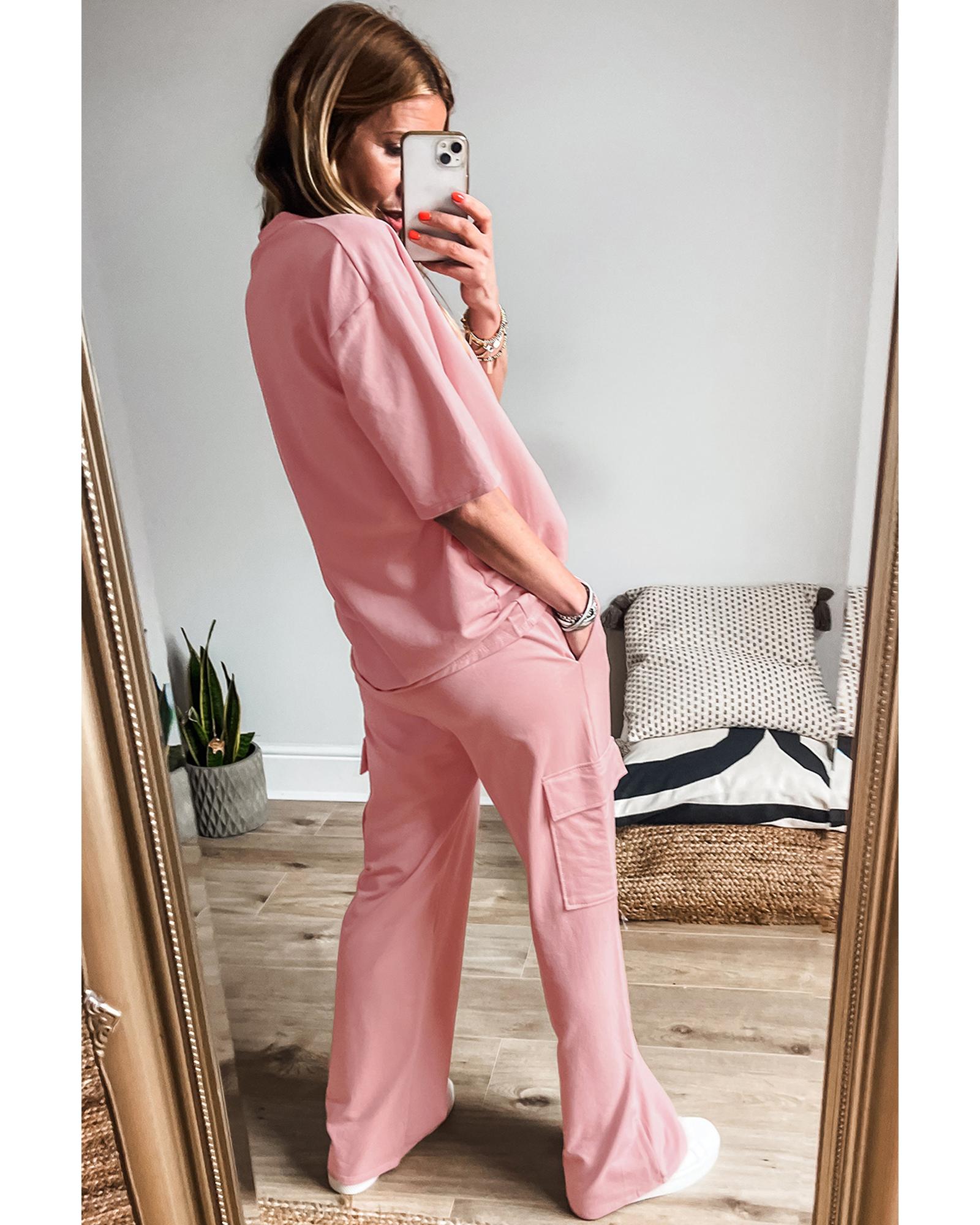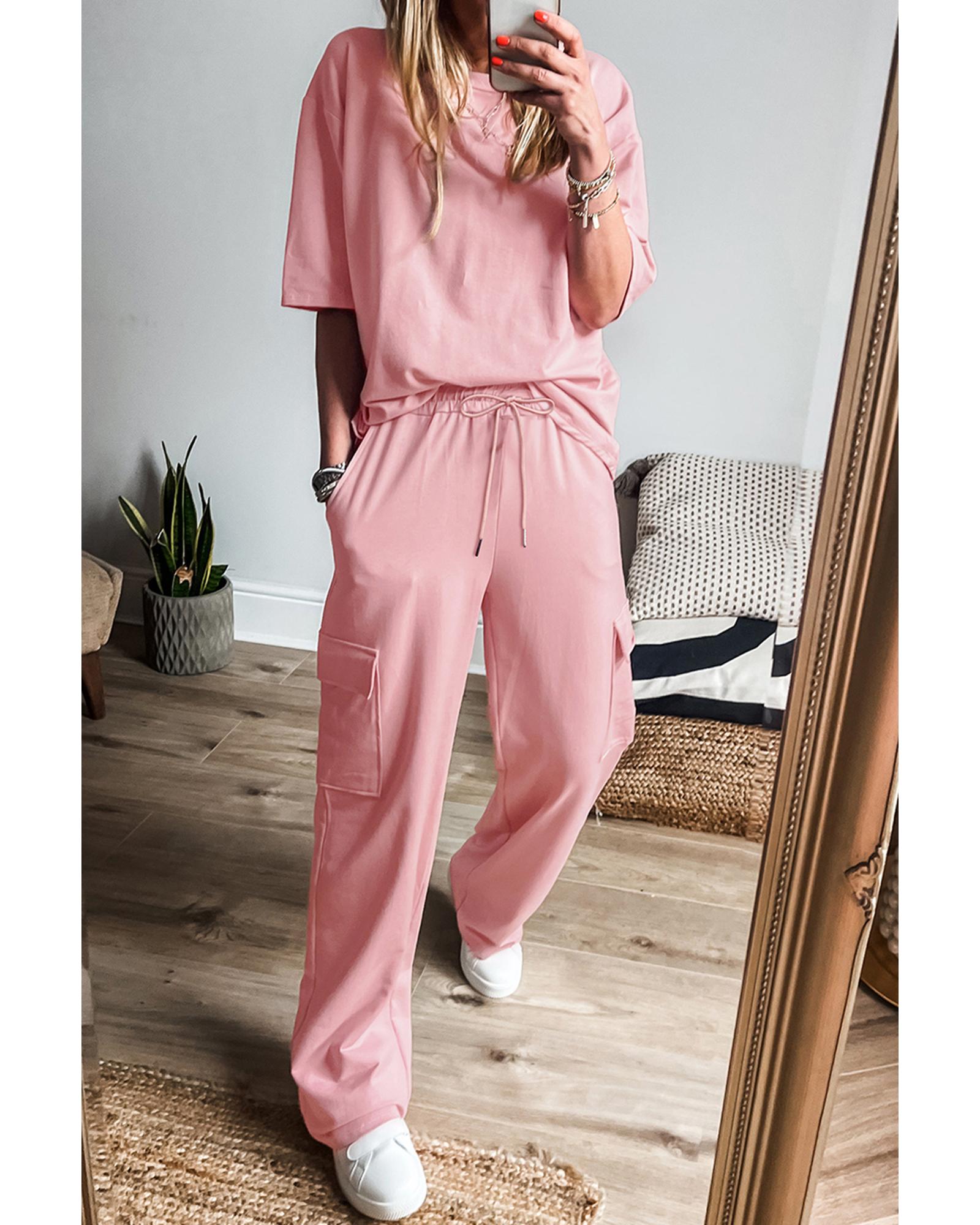 Apricot Pink Half Sleeve T-Shirt & Cargo Sweatpants Set – S