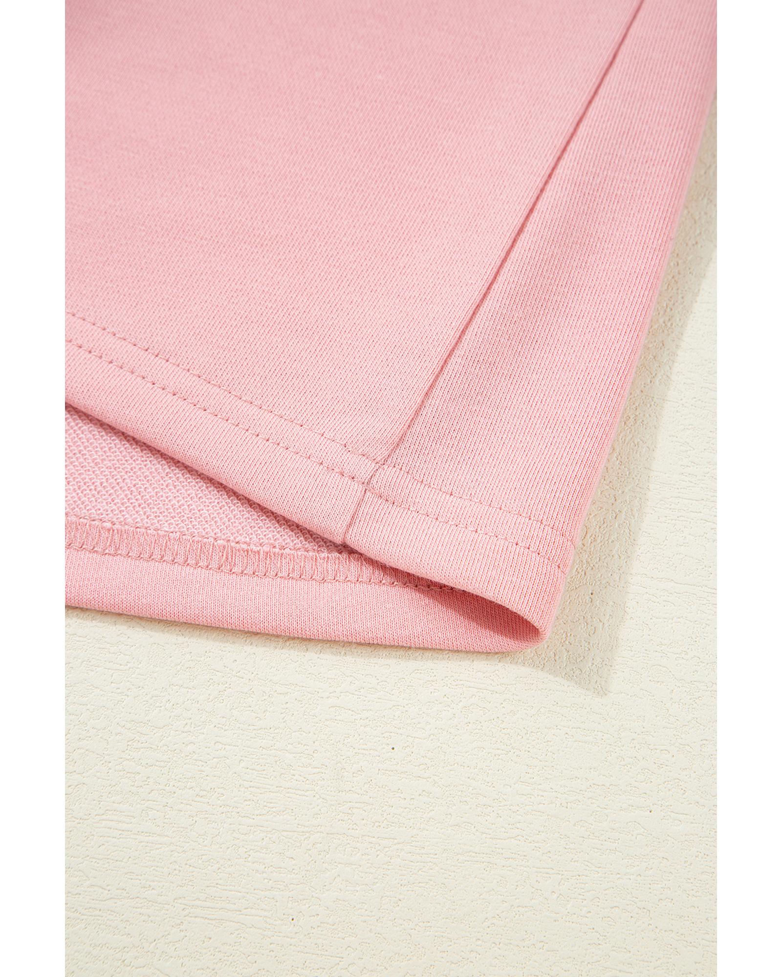 Bonbon Striped Accent Pullover and Shorts Two Piece Casual Set - L