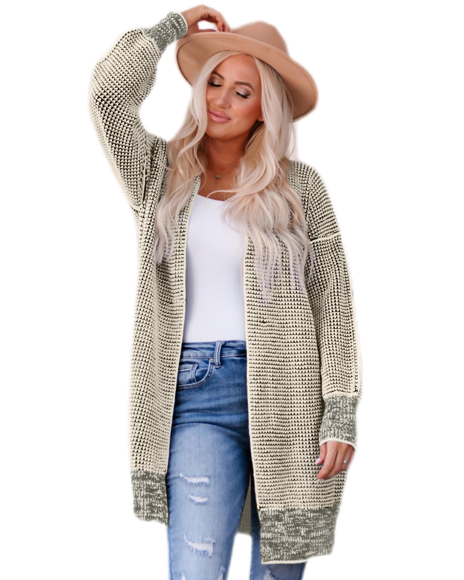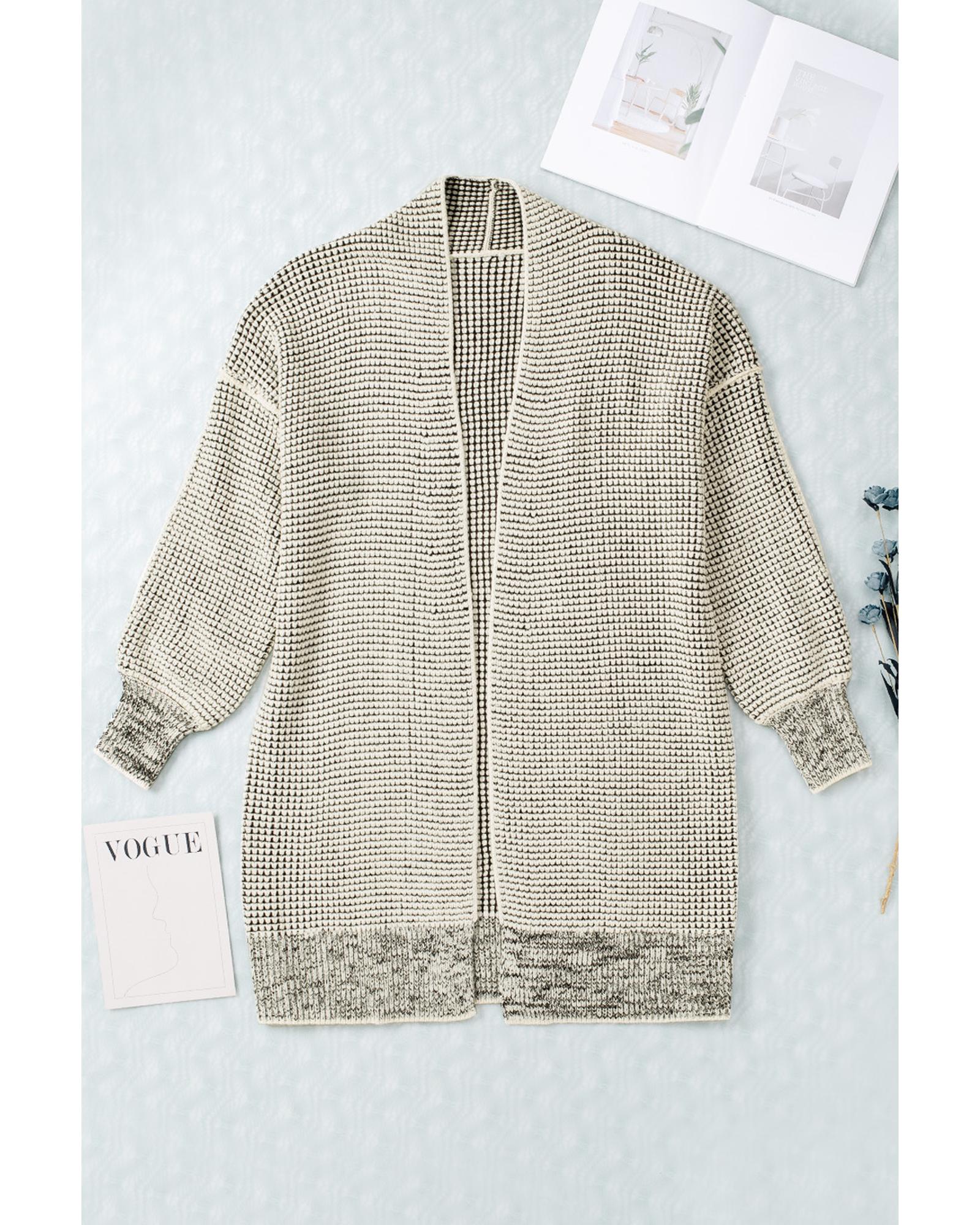 Apricot Plaid Knitted Long Open Front Cardigan – L