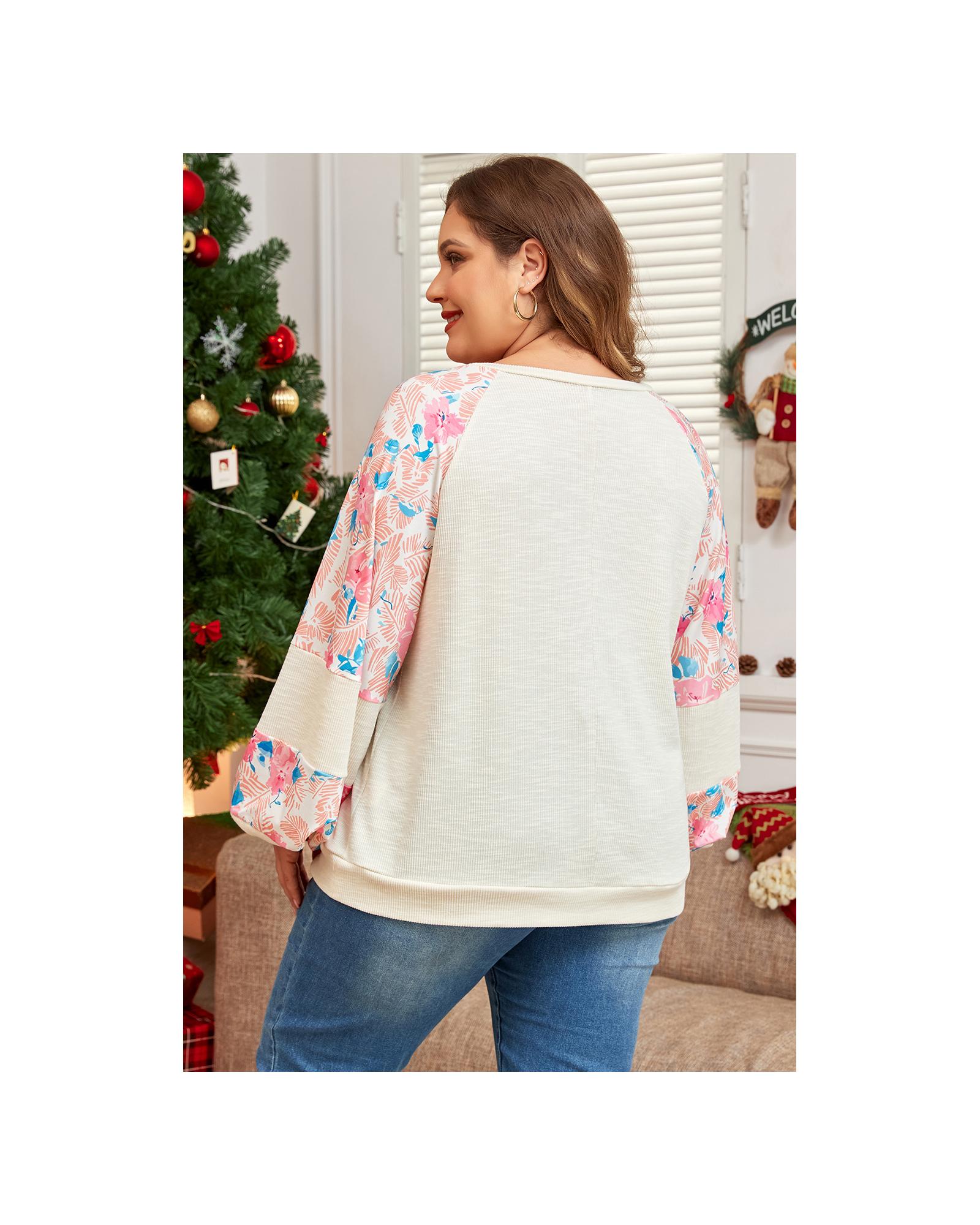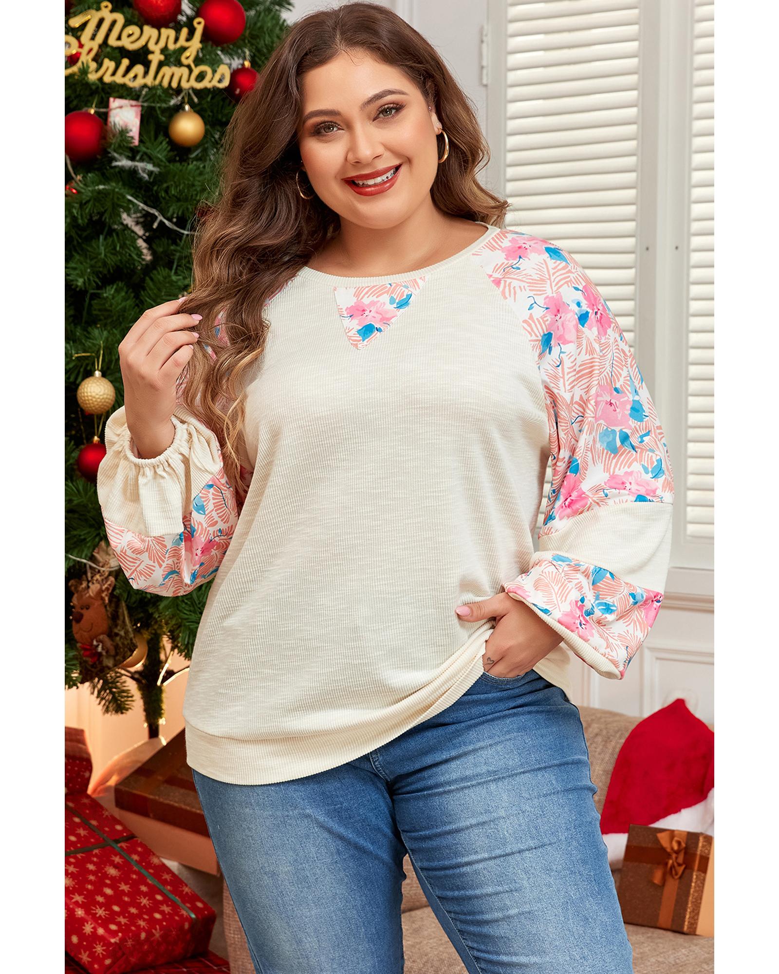 Apricot Plus Size Floral Patchwork Ribbed Puff Sleeve Top - 3X Original price was: $64.99.Current price is: $34.99.