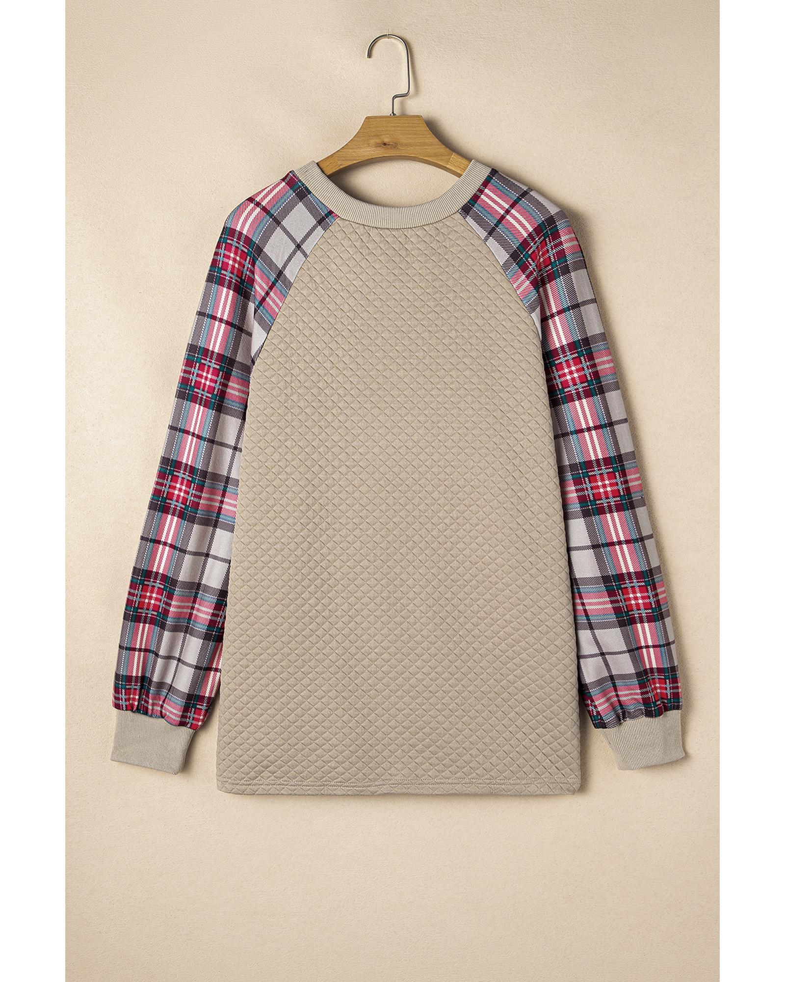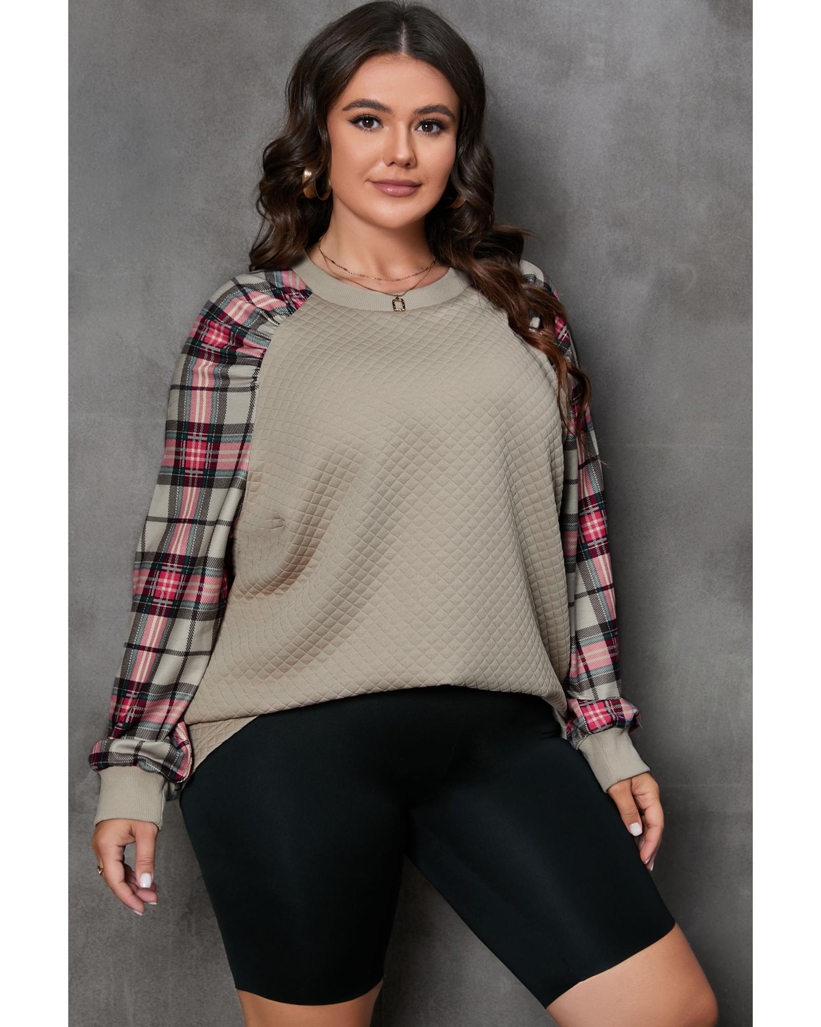 Apricot Plus Size Plaid Raglan Sleeve Crew Neck Sweatshirt – 2X