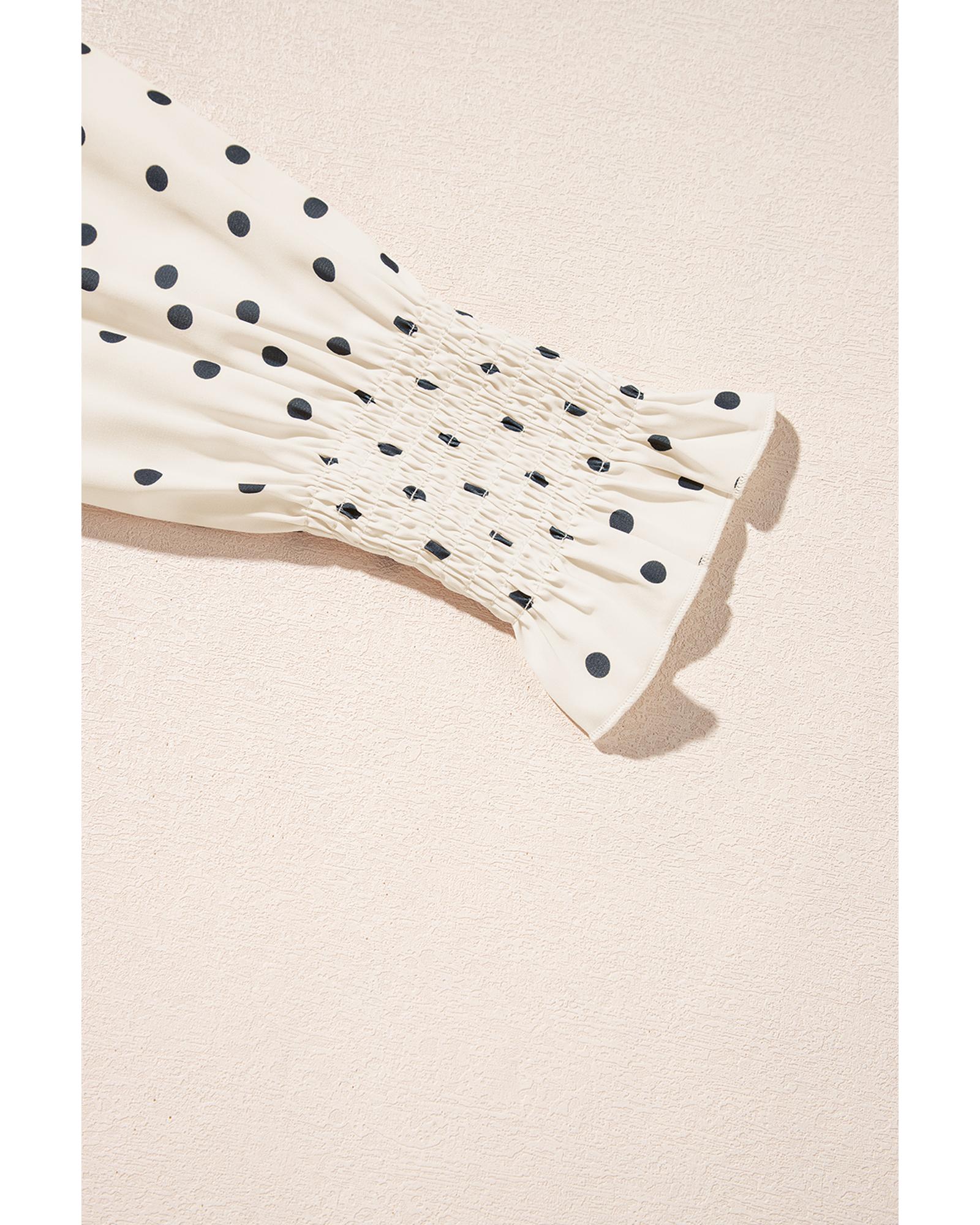 Apricot Polka Dot Print Frilled Collar Lantern Sleeve Blouse – M