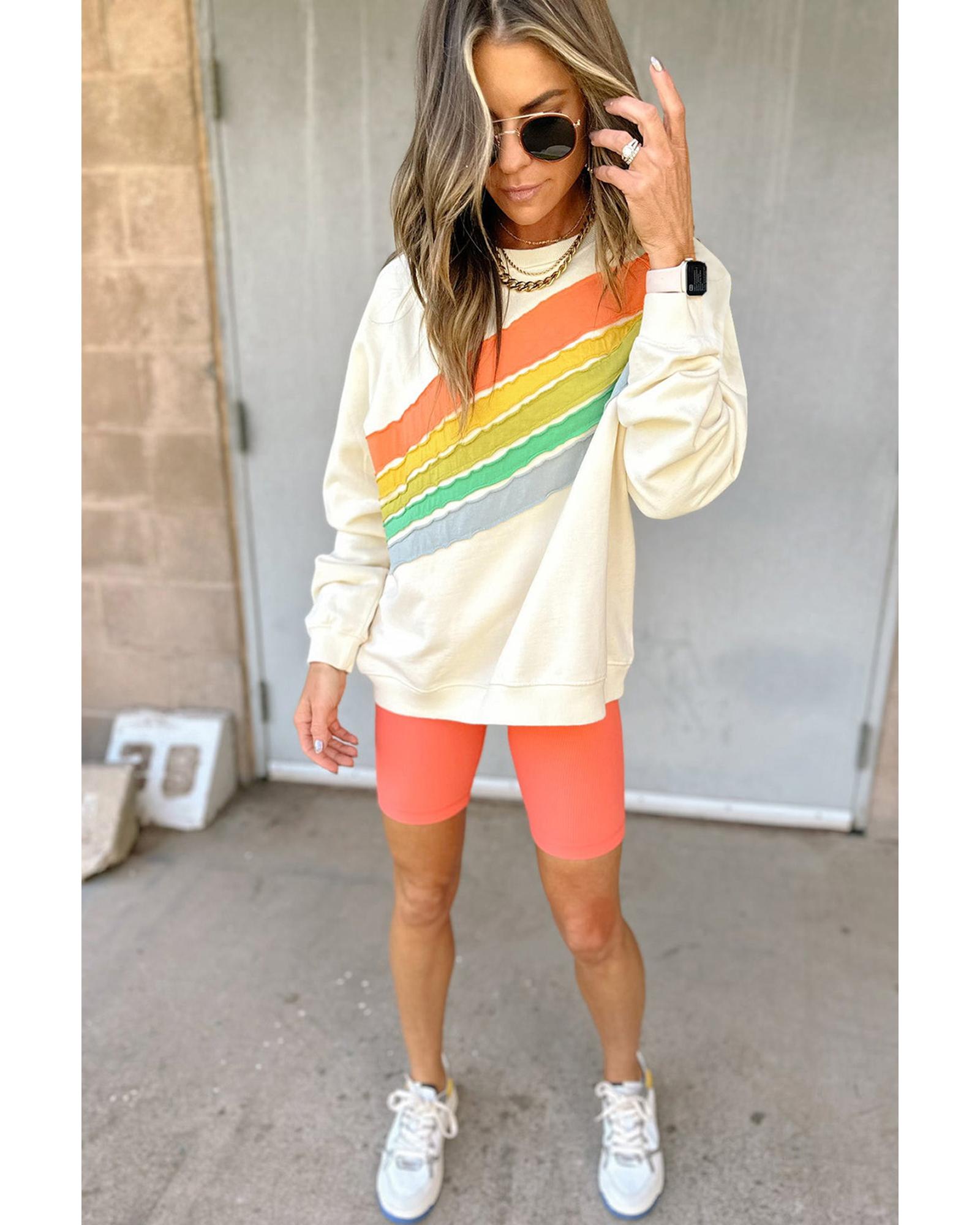 Apricot Rainbow Colorblock Striped Pullover Sweatshirt – L