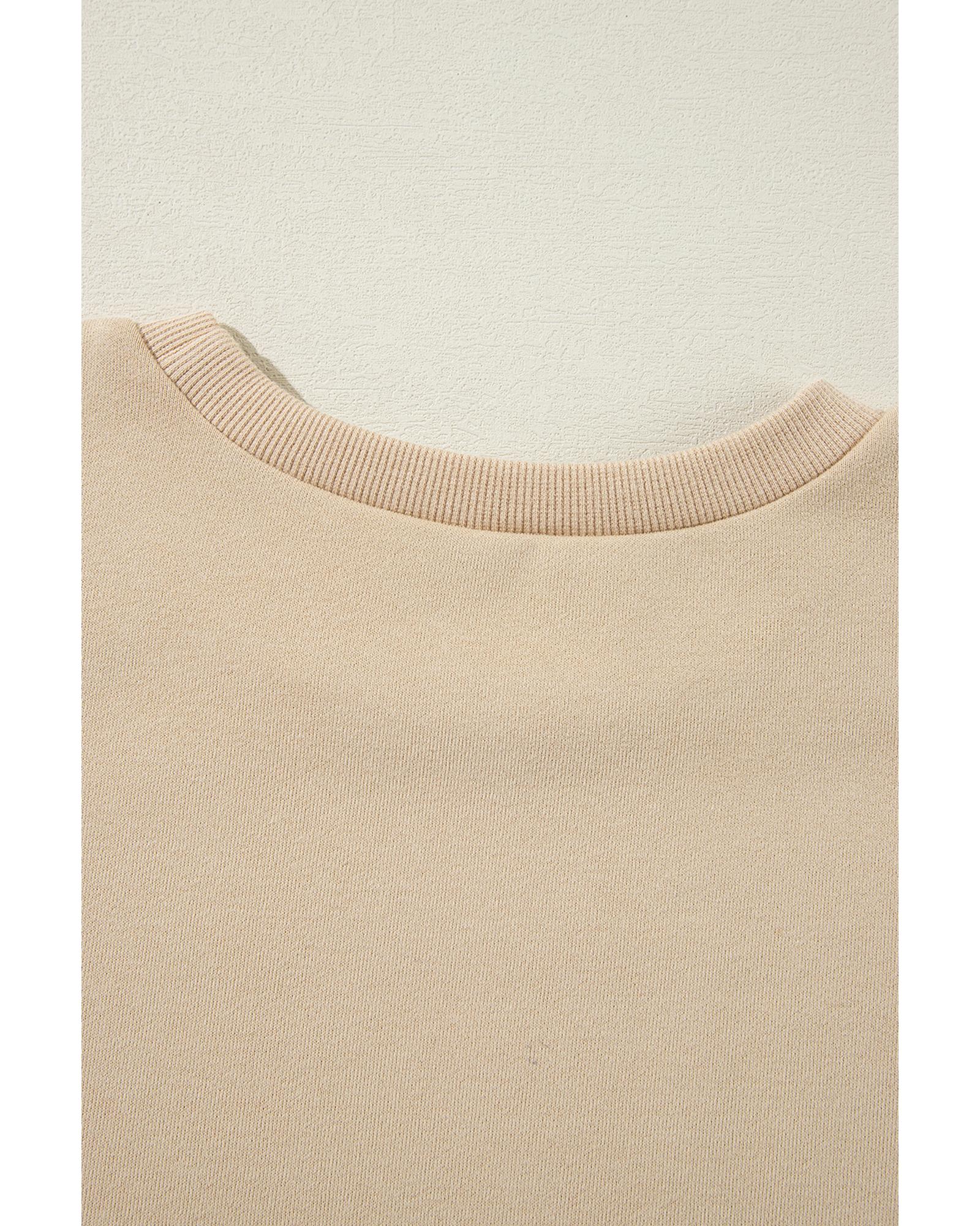 Apricot Solid Fleece Lined Drop Shoulder High Low Sweatshirt – L
