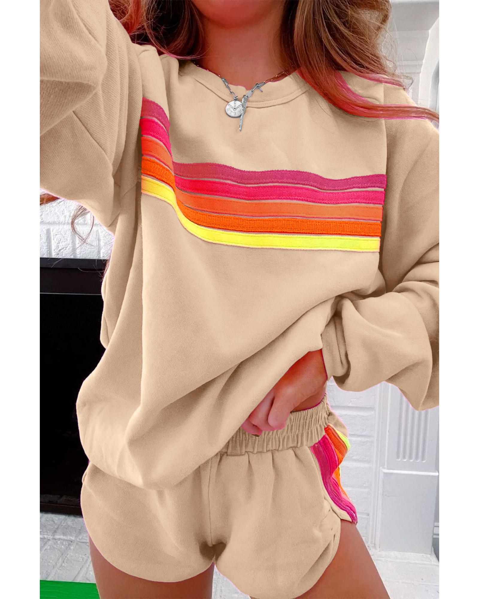 Apricot Striped Accent Pullover and Shorts Two Piece Casual Set – 2XL