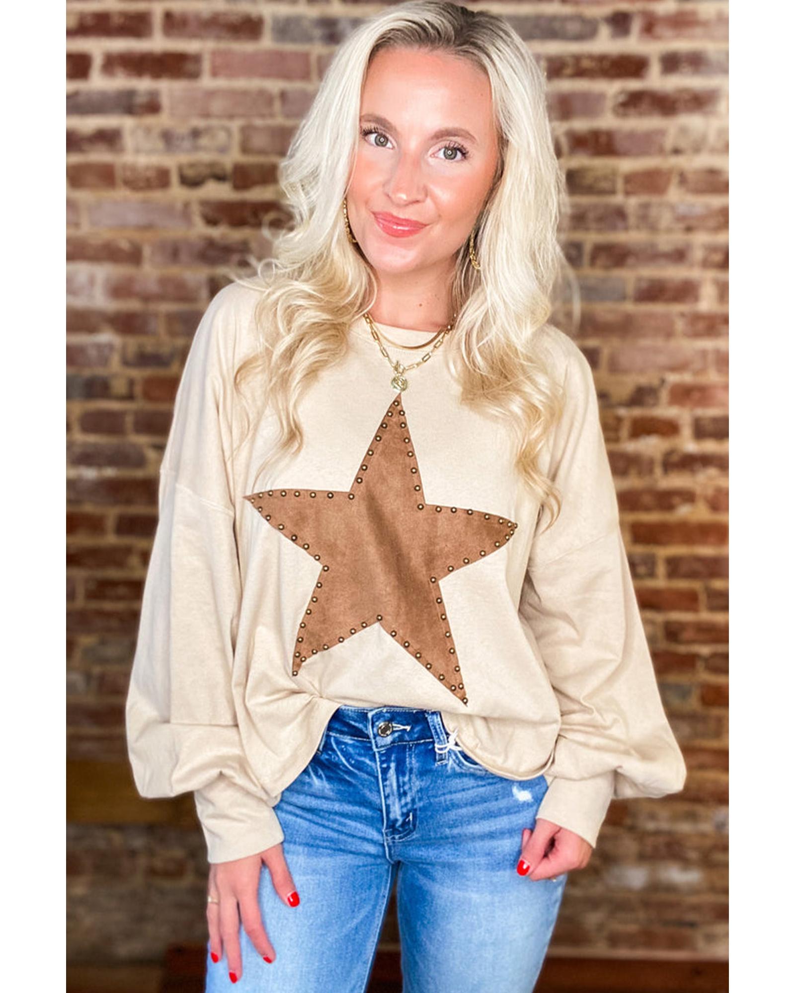 - Apricot Studded Star Graphic Oversized Long Sleeve Top