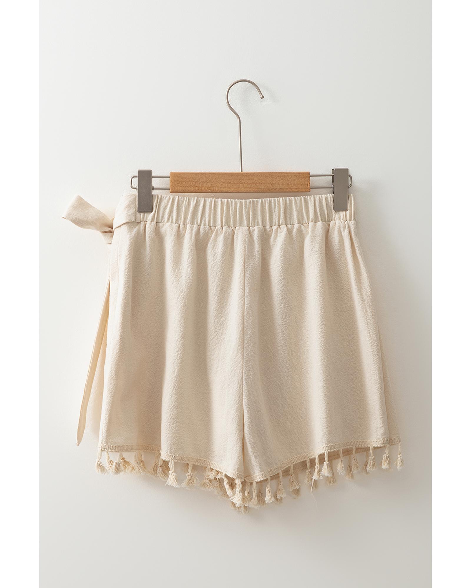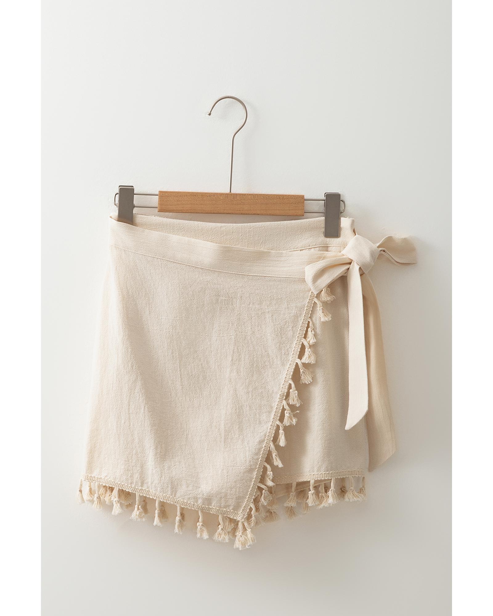 - Apricot Tassel Trim Wrap Knot Side Bohemian Style Mini Skort