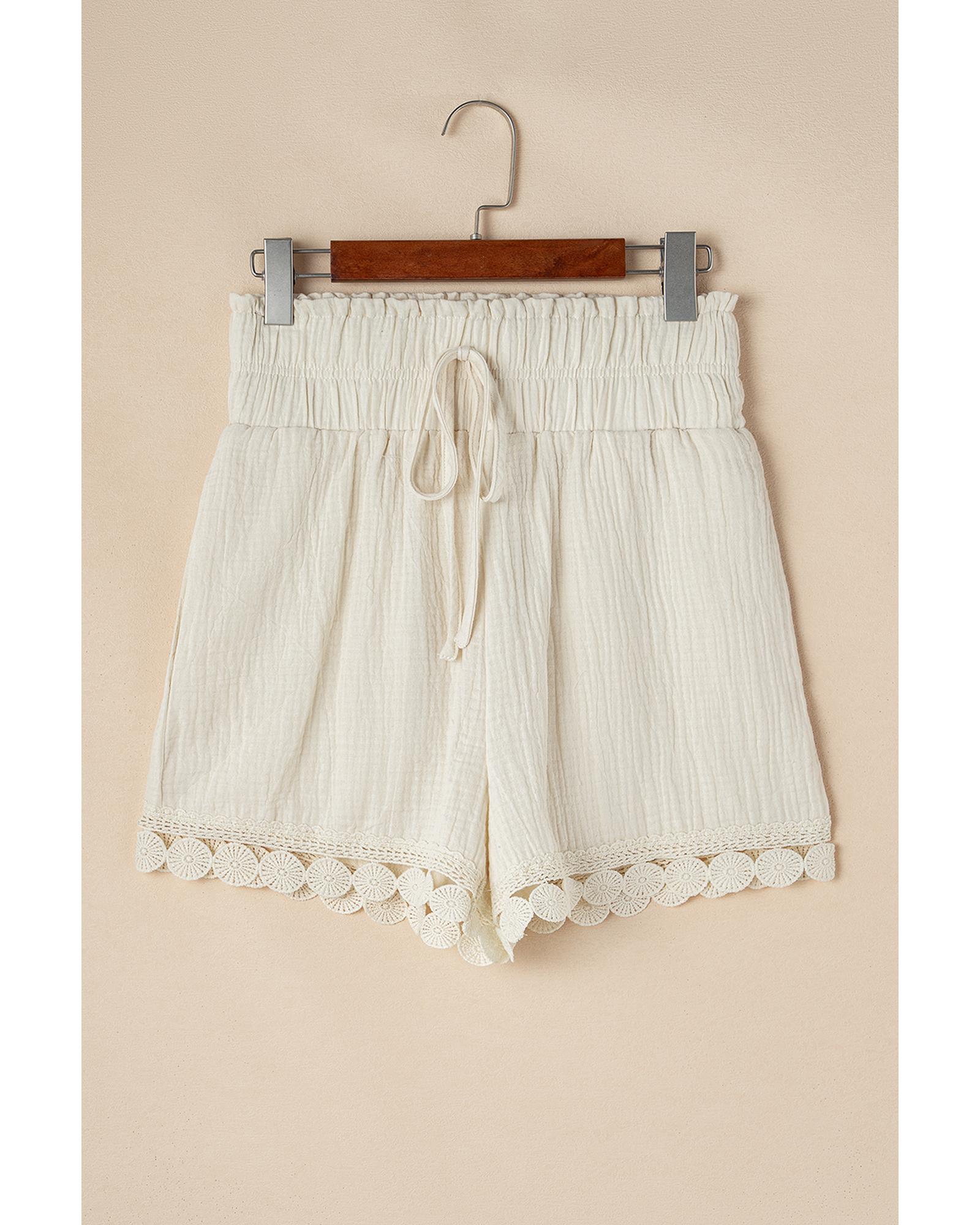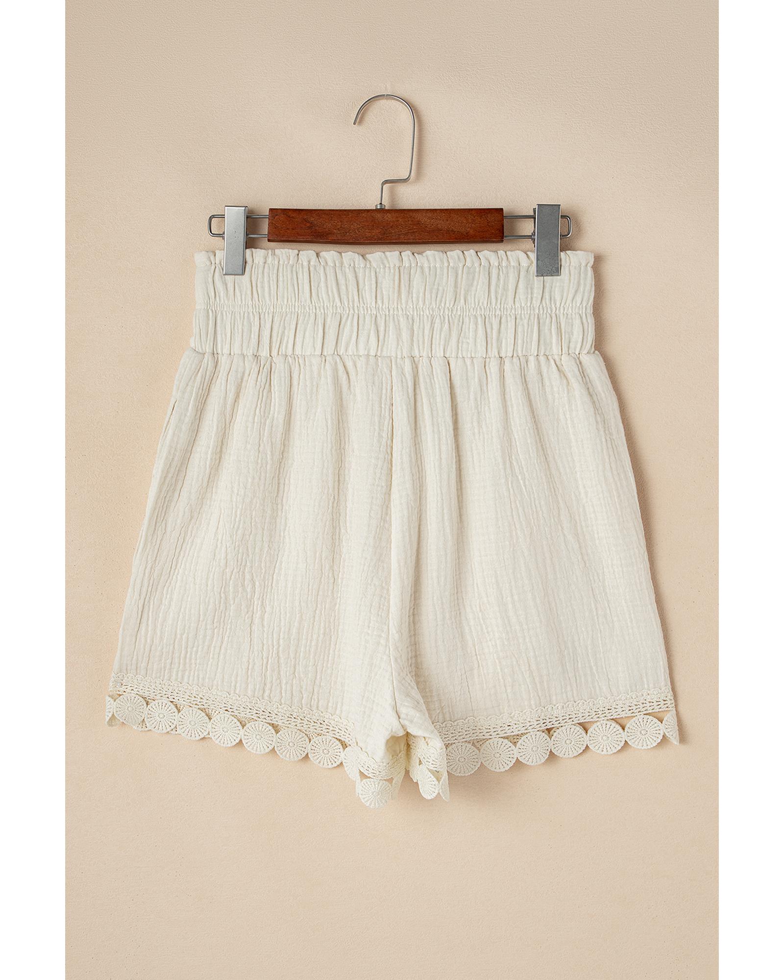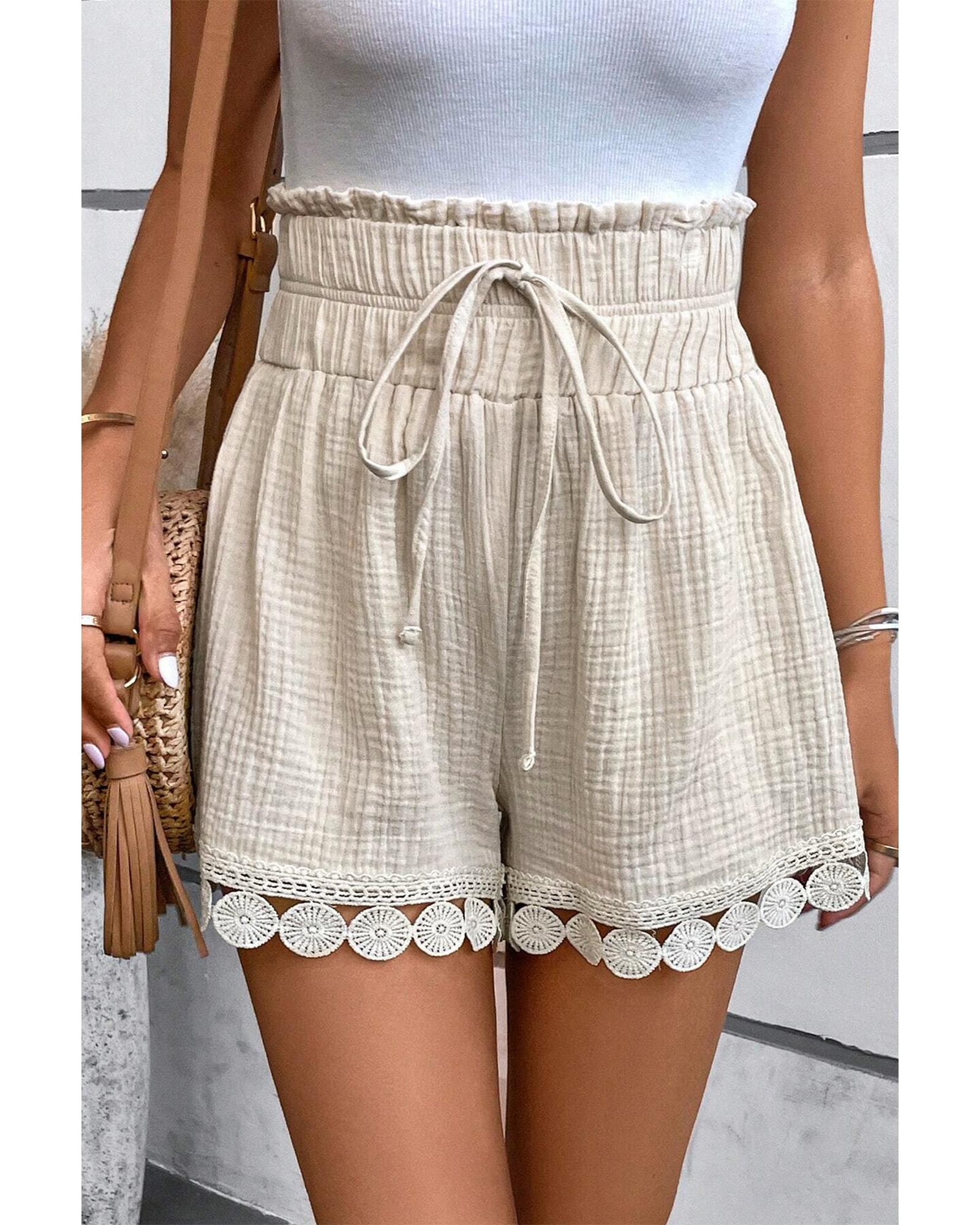 Apricot Textured Frilled Knotted High Waist Lace Hem Shorts – M