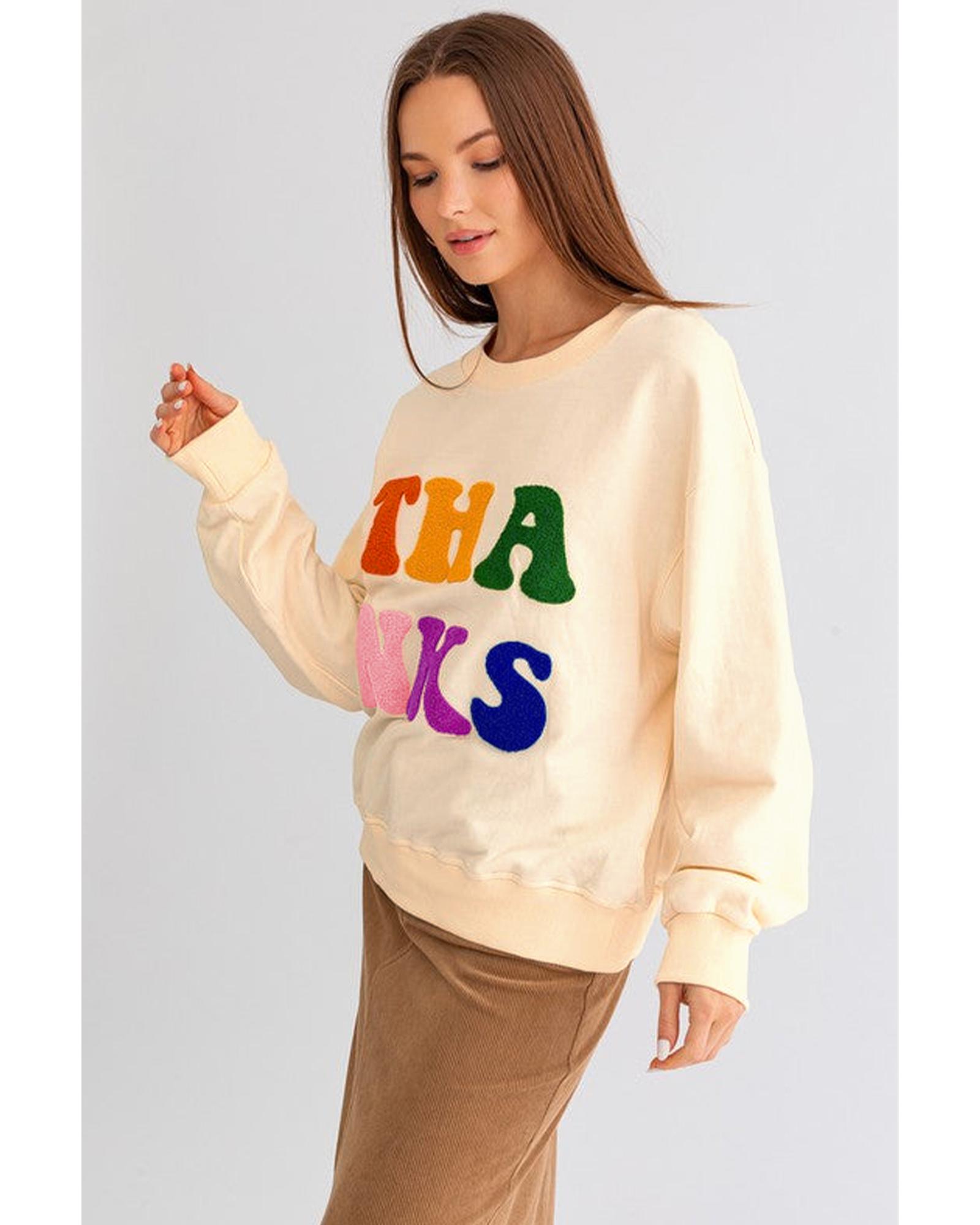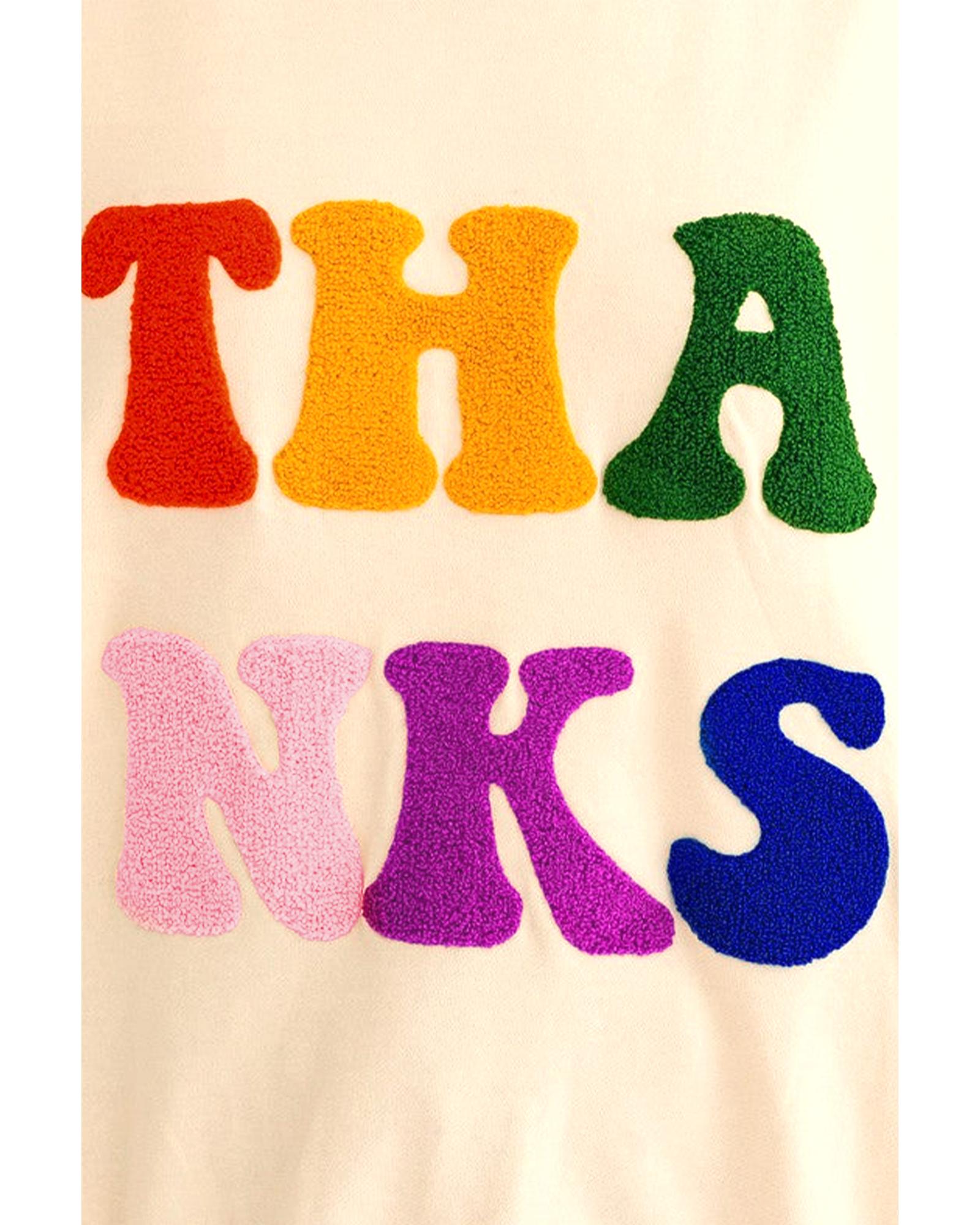Apricot THANKS Chenille Embroidered Drop Shoulder Graphic Sweatshirt – XL