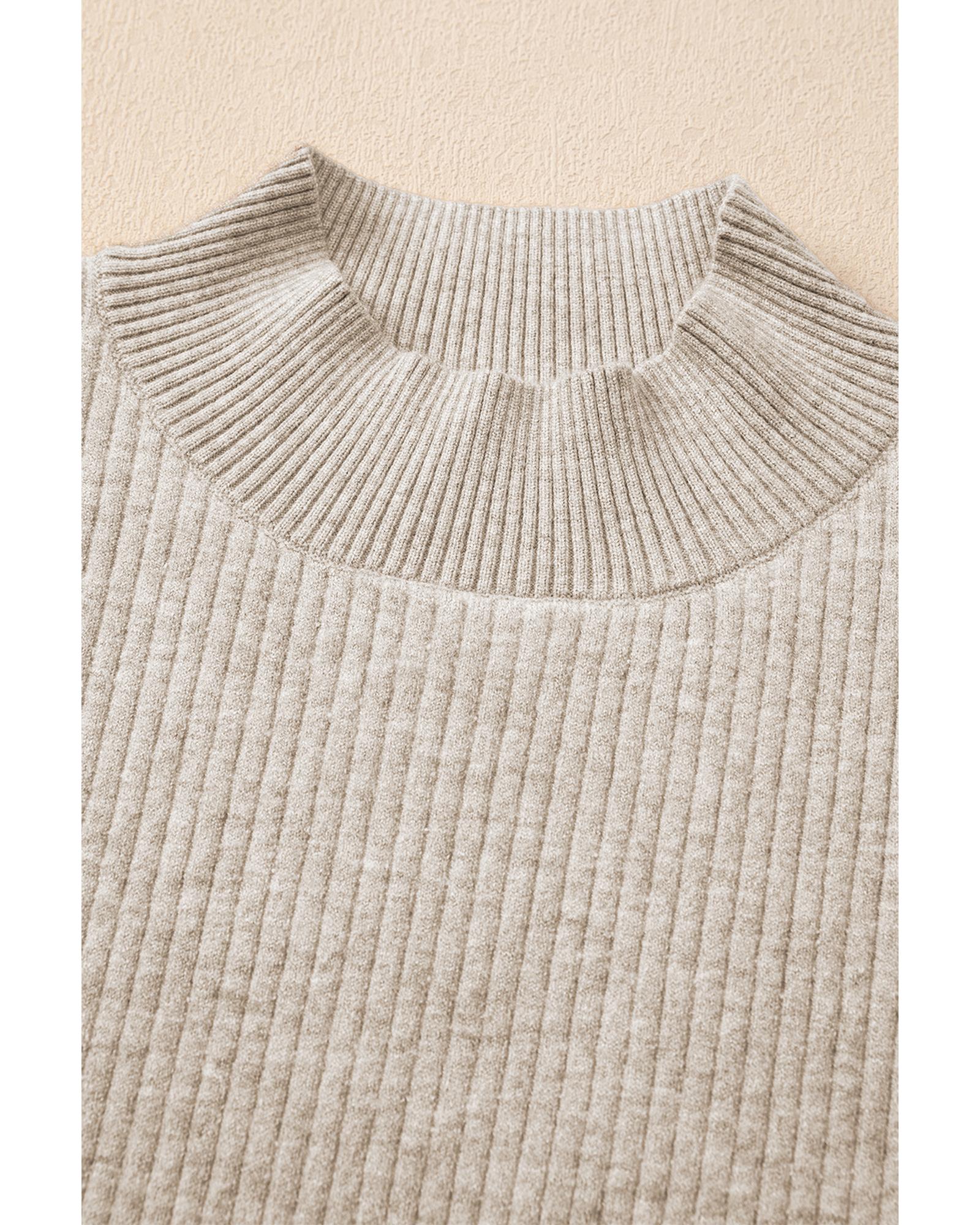 - Apricot Thermal Lined Ribbed Knit Mock Neck Sweater