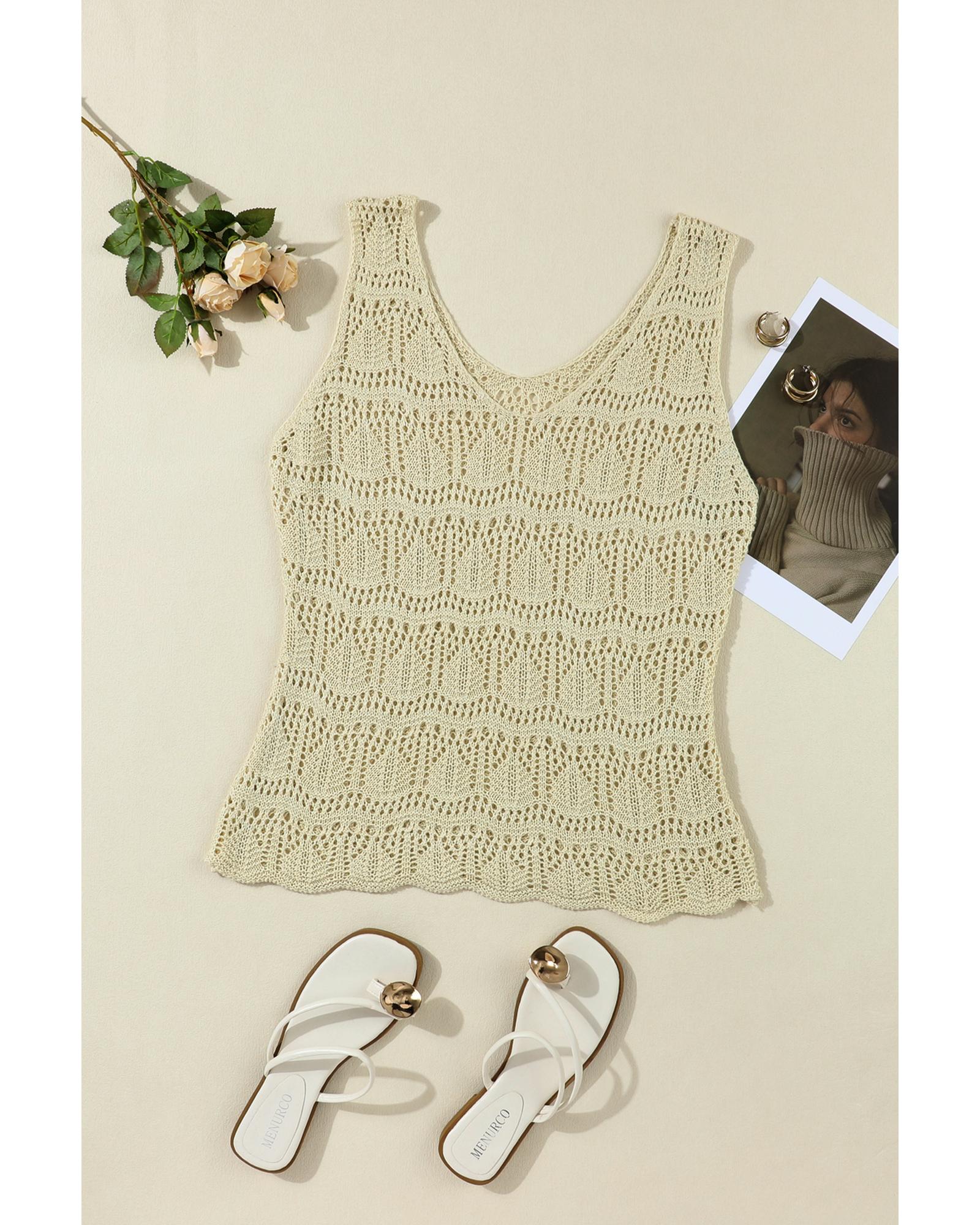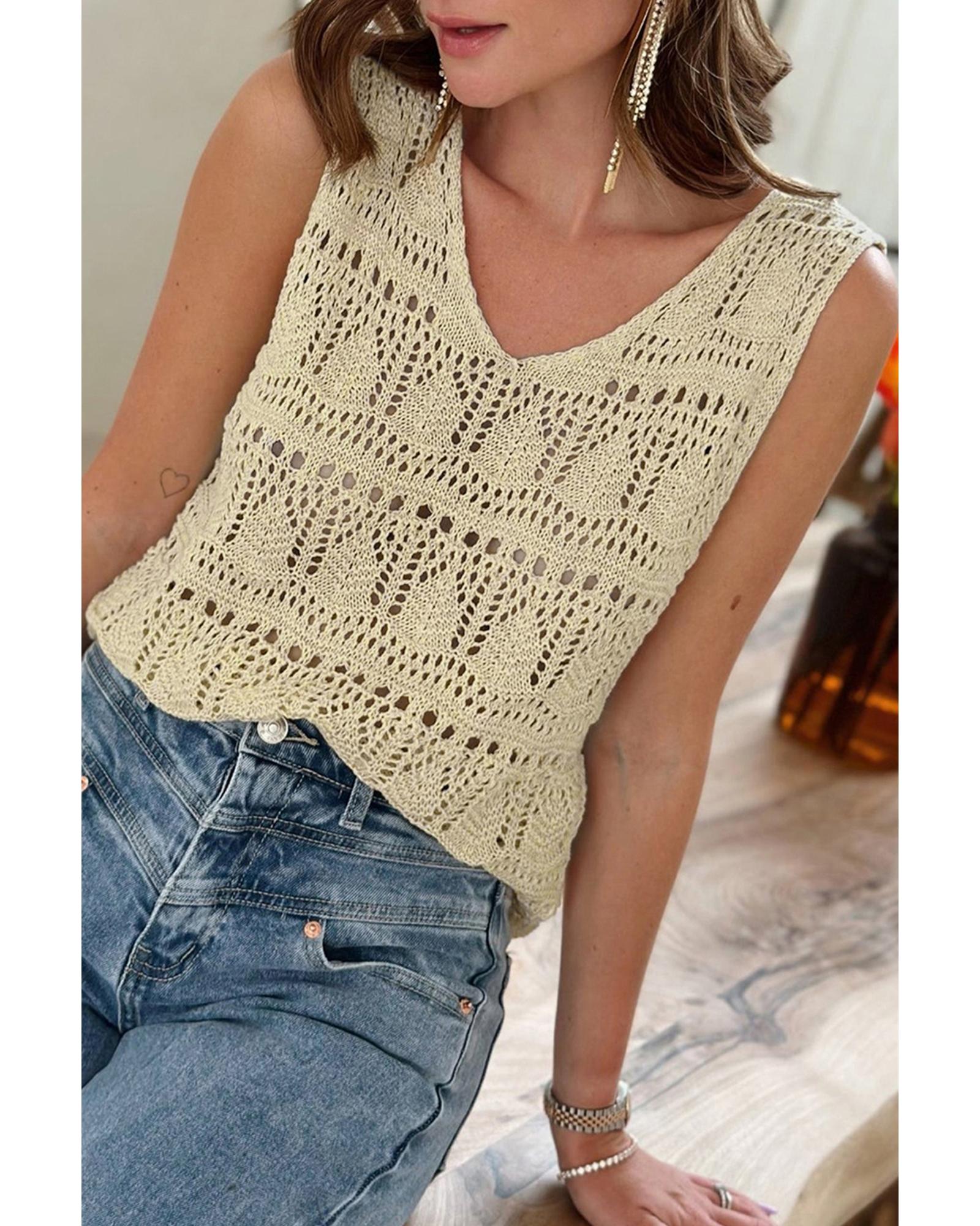 Apricot V Neck Textured Hollow-out Sweater Vest – M