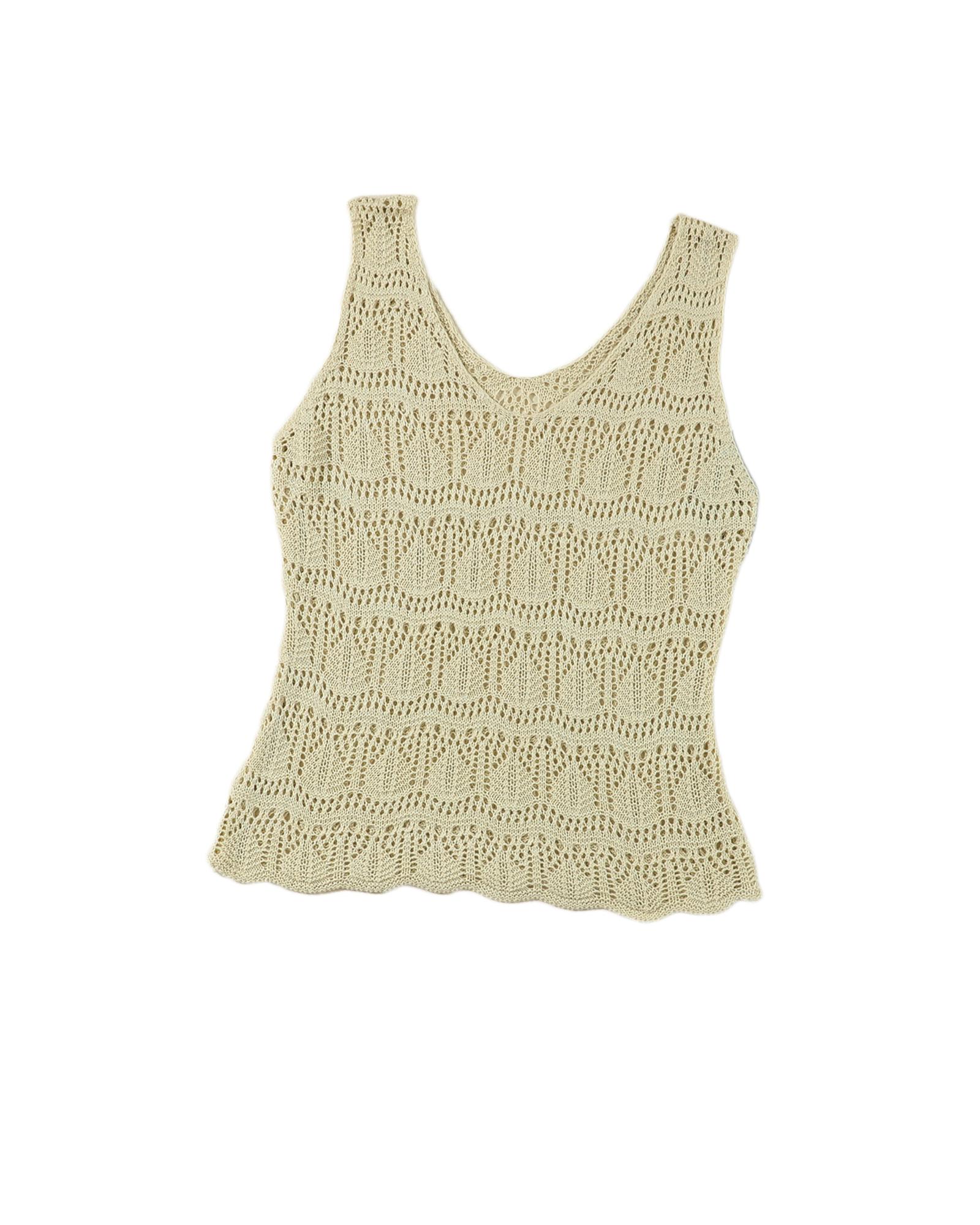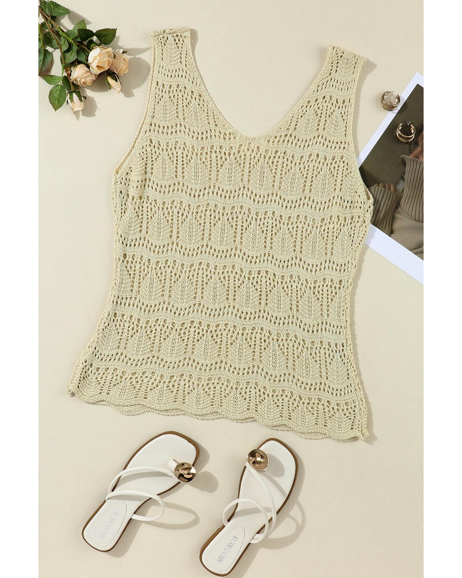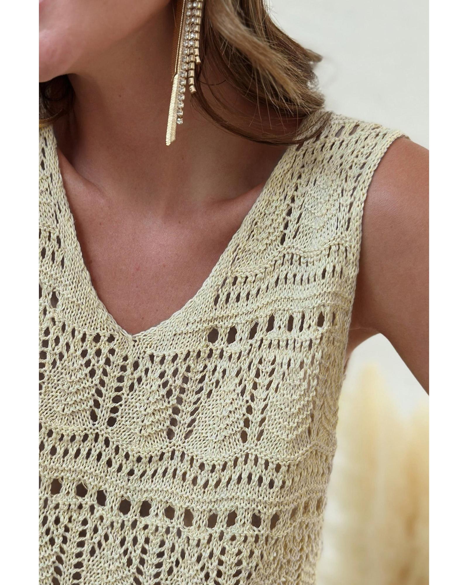 Apricot V Neck Textured Hollow-out Sweater Vest – XL