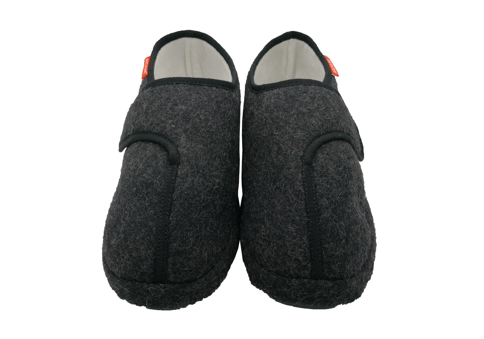 The Plus Slippers have an adjustable closure at the front of the shoe.