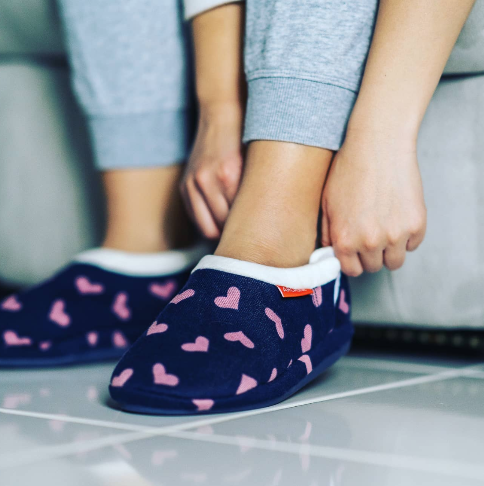 ARCHLINE Orthotic Slippers CLOSED Arch Scuffs Moccasins Pain Relief in Navy Hearts – EUR43