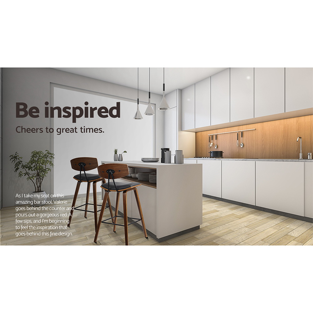 Meticulously crafted with solid wood in a stunning walnut finish for the legs and backrest, the Bentwood Bar Stool features a generous faux leather seat and backrest that feel comfortably plush and look absolutely classy. The wide backrest also provides appreciable enveloped support while the anti-slip rubber pads on the leg bottoms keep the stool steady and firm even with robust use. Not least, the power coated metal footrest rectangle lets you perch in style, feet up.
