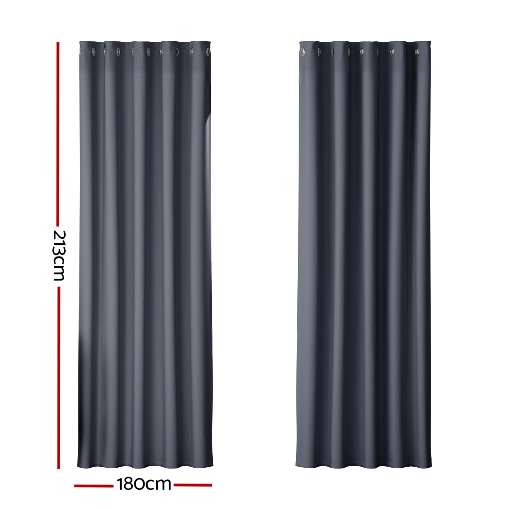 Artiss 2X Blockout Curtains Eyelet 180x213cm Charcoal