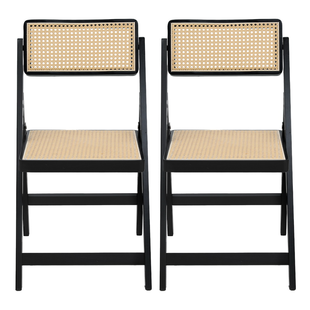 Artiss 2x Dining Chairs Wooden Rattan Foldable Black