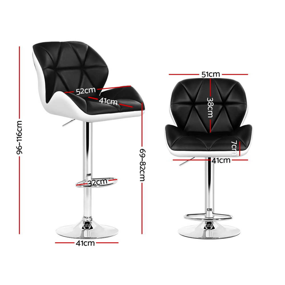 Artiss 4x Bar Stools Gas Lift Padded Leather Black & White