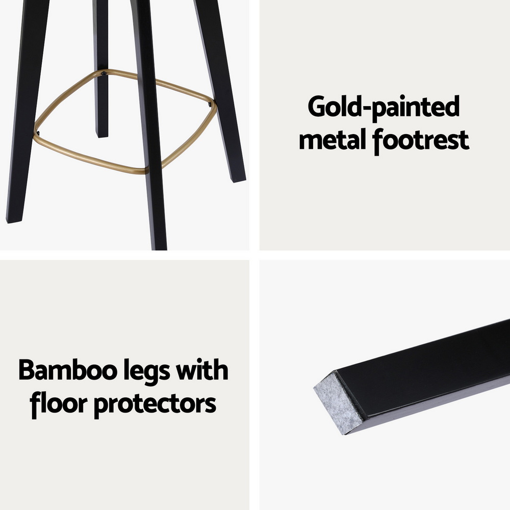 Upgrade your home with these elegant backless rattan bar stools, featuring a stylish two-tone design and a comfortable woven rattan seat. The sturdy bamboo construction ensures durability, while the gold-painted metal footrest adds a touch of sophistication. With a 120kg weight capacity and anti-slip floor protectors, these stools offer reliable stability and safety. Perfect for kitchen counters or bar areas, this set of 4 stools combines functionality with modern aesthetics. Easy to assemble and built to last, they’re the perfect addition to your space. Order now and elevate your seating experience!