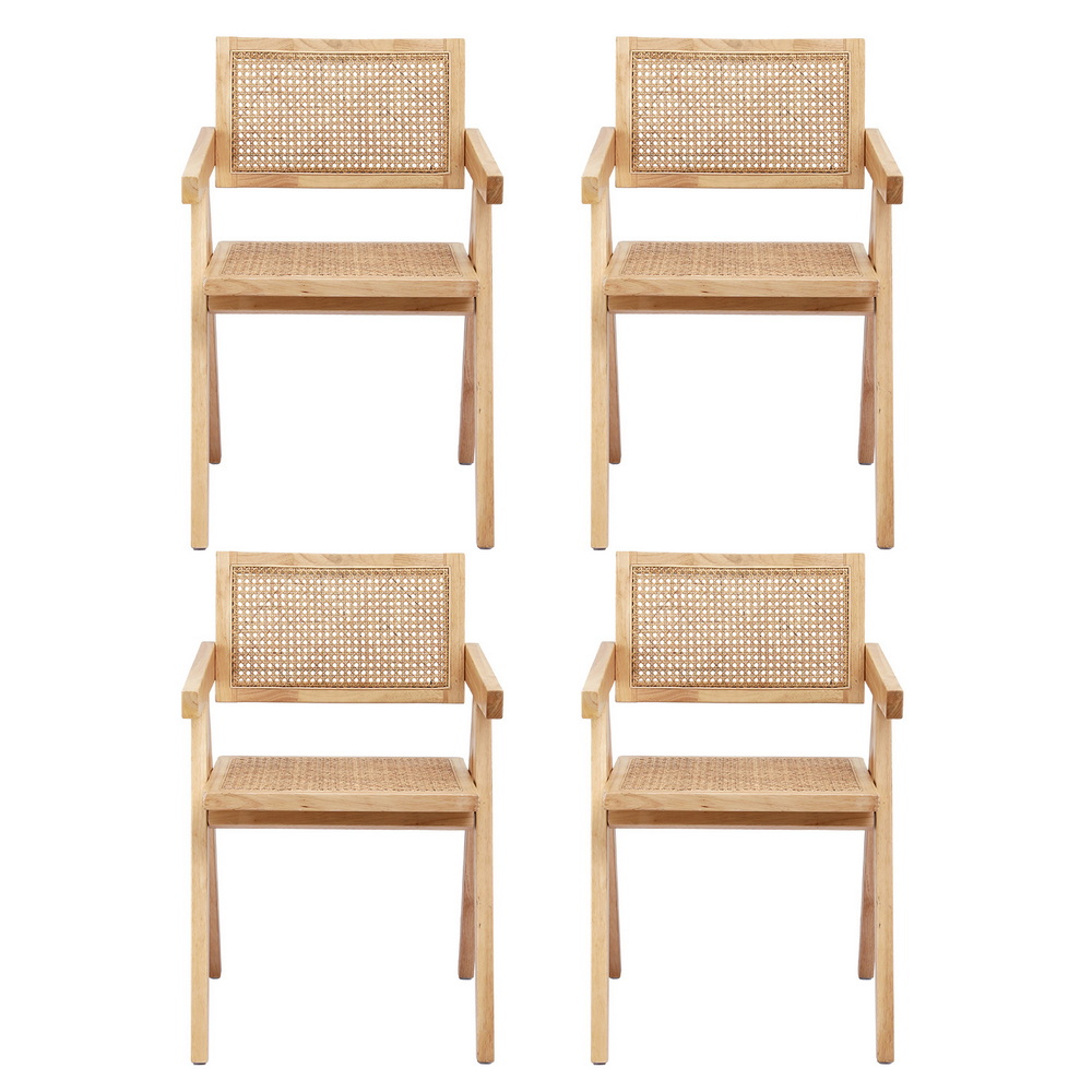 Artiss 4x Dining Chairs Wooden Rattan Seat Rubber Wood Frame