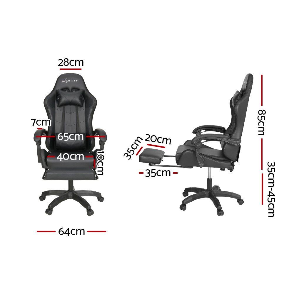 Artiss 6 Point Massage Gaming Office Chair 7 LED Footrest Black
