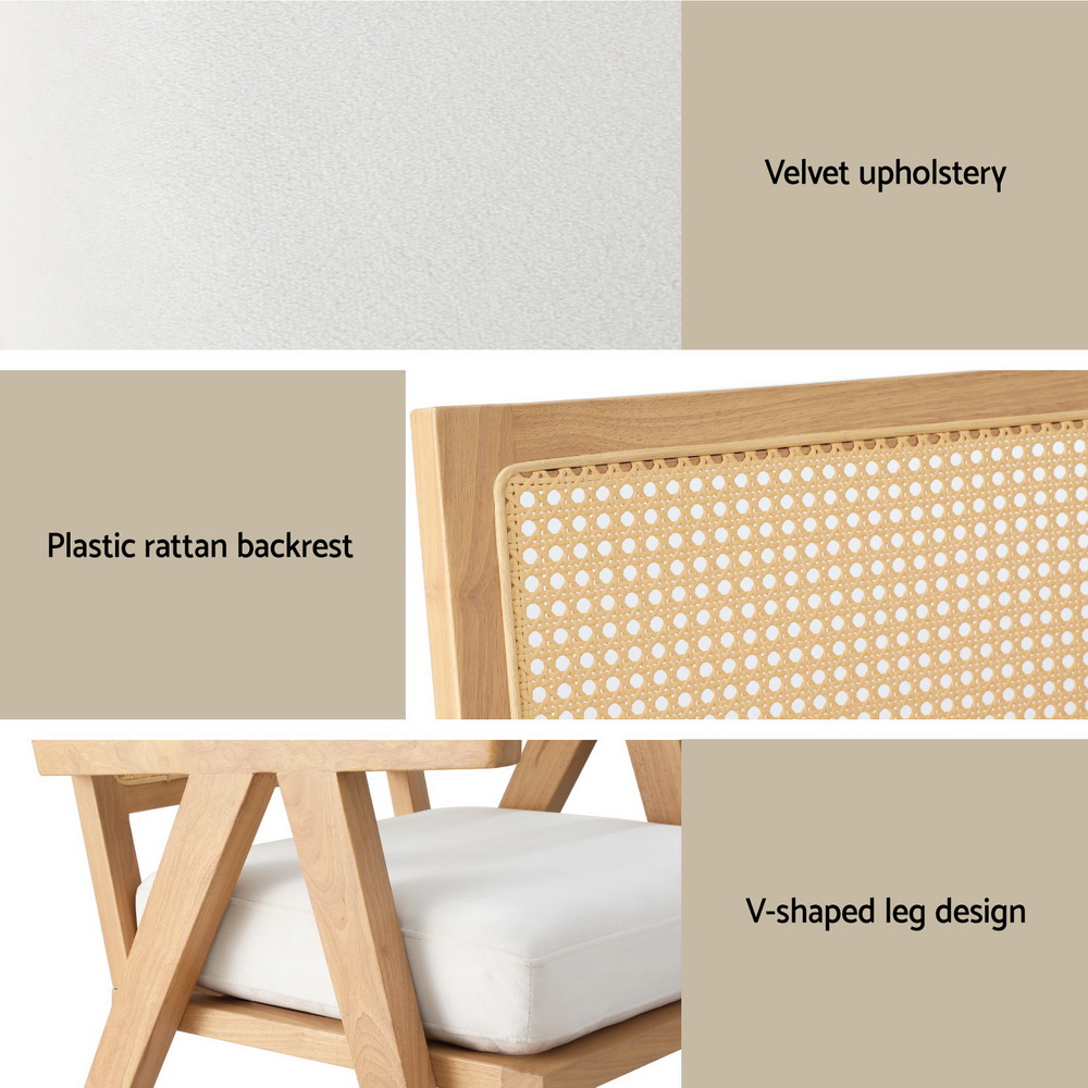Artiss Armchair Accent Chair Lounge Rattan Velvet Pine