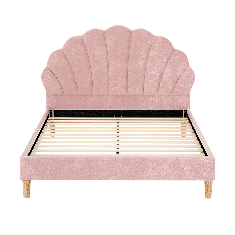 Artiss Bed Frame Double Size Scallop-Shape Bedhead Beds Base Pink Velvet Fabric