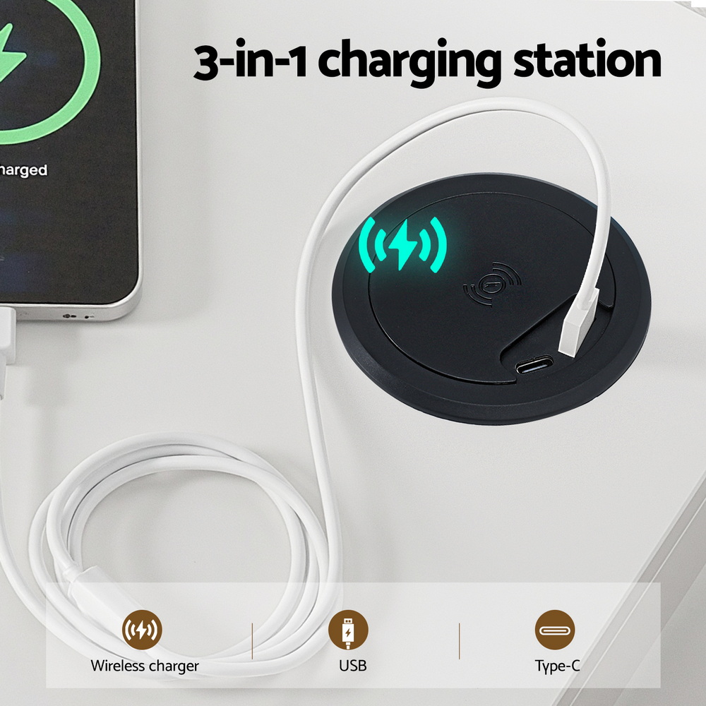 Upgrade your home with this versatile buffet cabinet, designed for both style and functionality. With spacious tabletop, 3 open compartments, 3 drawers, and a 2-door cabinet, it offers ample storage for any space. The adjustable warm LED lighting adds a modern touch, while the 3-in-1 charging port (wireless, USB, Type-C) ensures convenience. Crafted from durable E1 particle board, it features a matt surface, elegant gold handles, and transparent arched acrylic doors. An anti-tip kit guarantees safety, and it’s easy to assemble, clean, and maintain. Elevate any room with this sleek and practical storage solution!