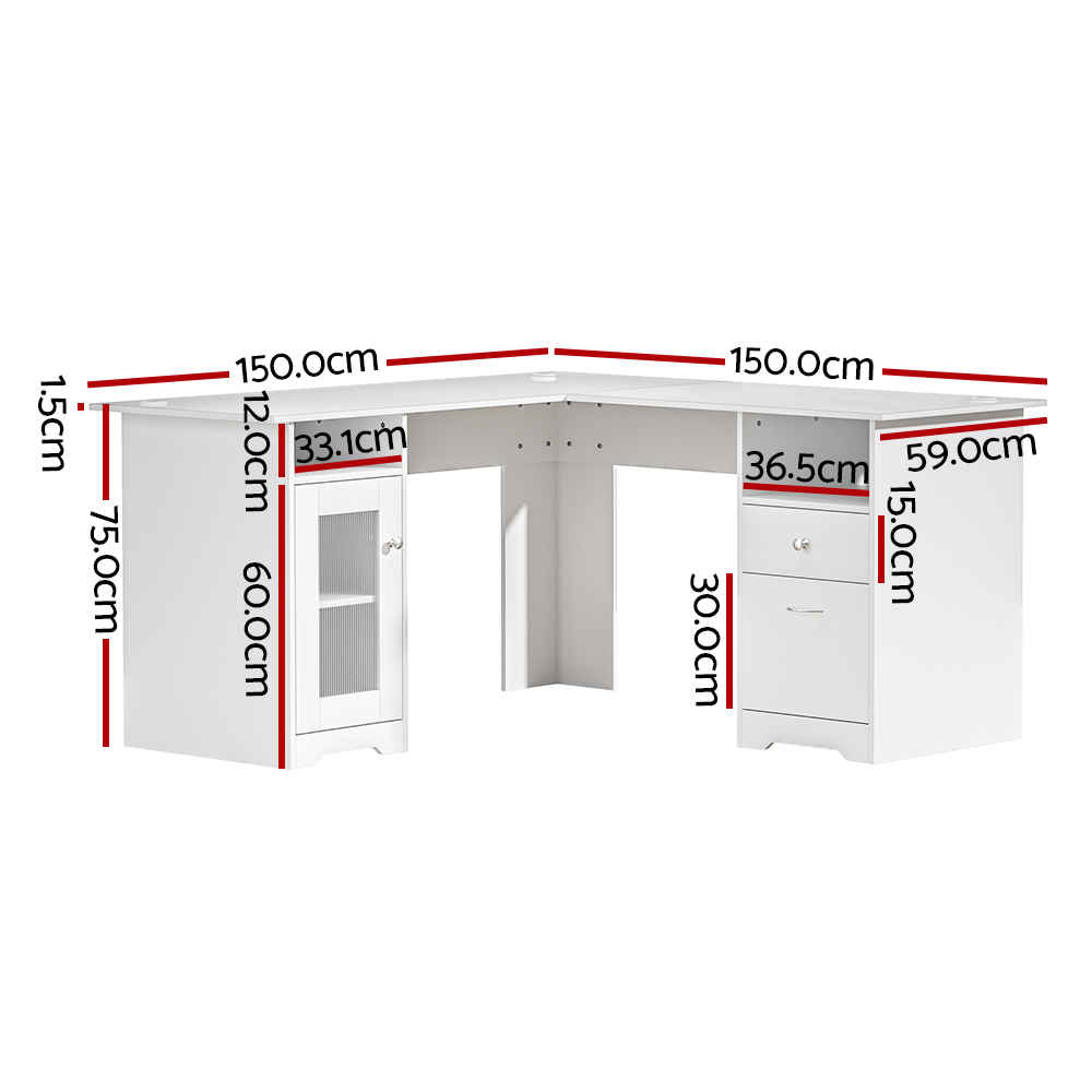 Artiss Computer Desk Shelf Cabinet L-Shape White 150CM