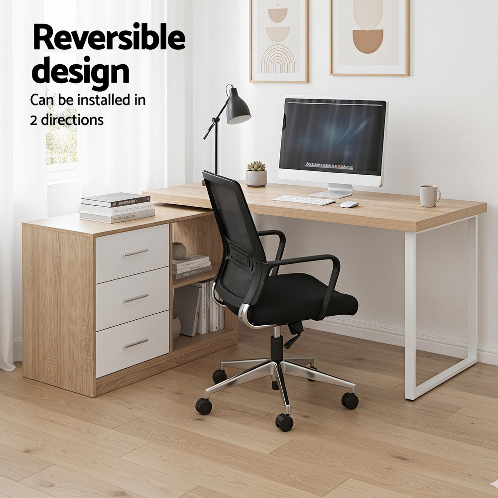 Artiss Computer Desk Swivelling L shape Home Office Storage Cabinet Oak