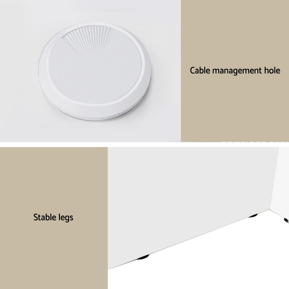 Crafted from durable MDF in a clean white finish, this desk offers a surprising amount of functionality. It features convenient open storage shelves for your books and essentials, a dedicated CPU stand to keep your tower off the floor, and a practical cable management hole to maintain a tidy and clutter-free workspace. The robust design includes stable legs to ensure a solid and shake-free surface for work or study.