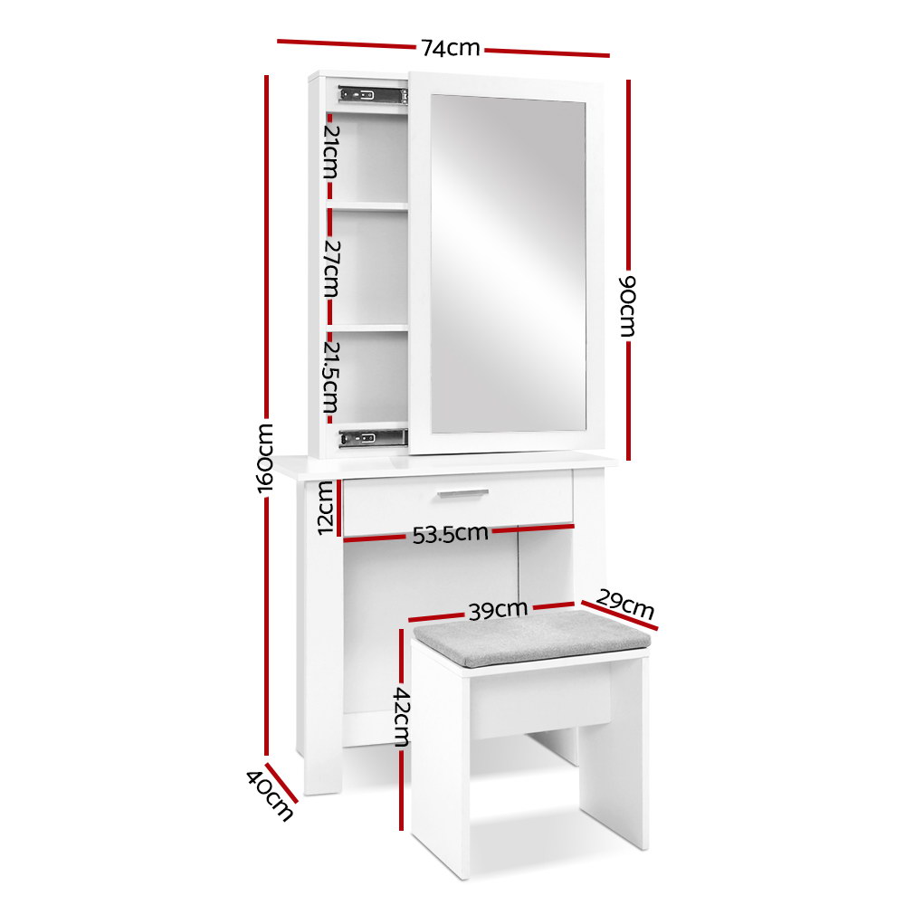 Dressing table overall dimensions: 74cm x 40cm x 160cm