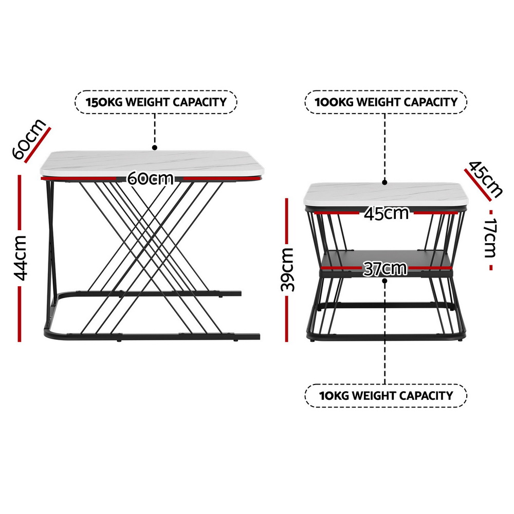 Artiss Nesting Coffee Table Set of 2 Marble Effect