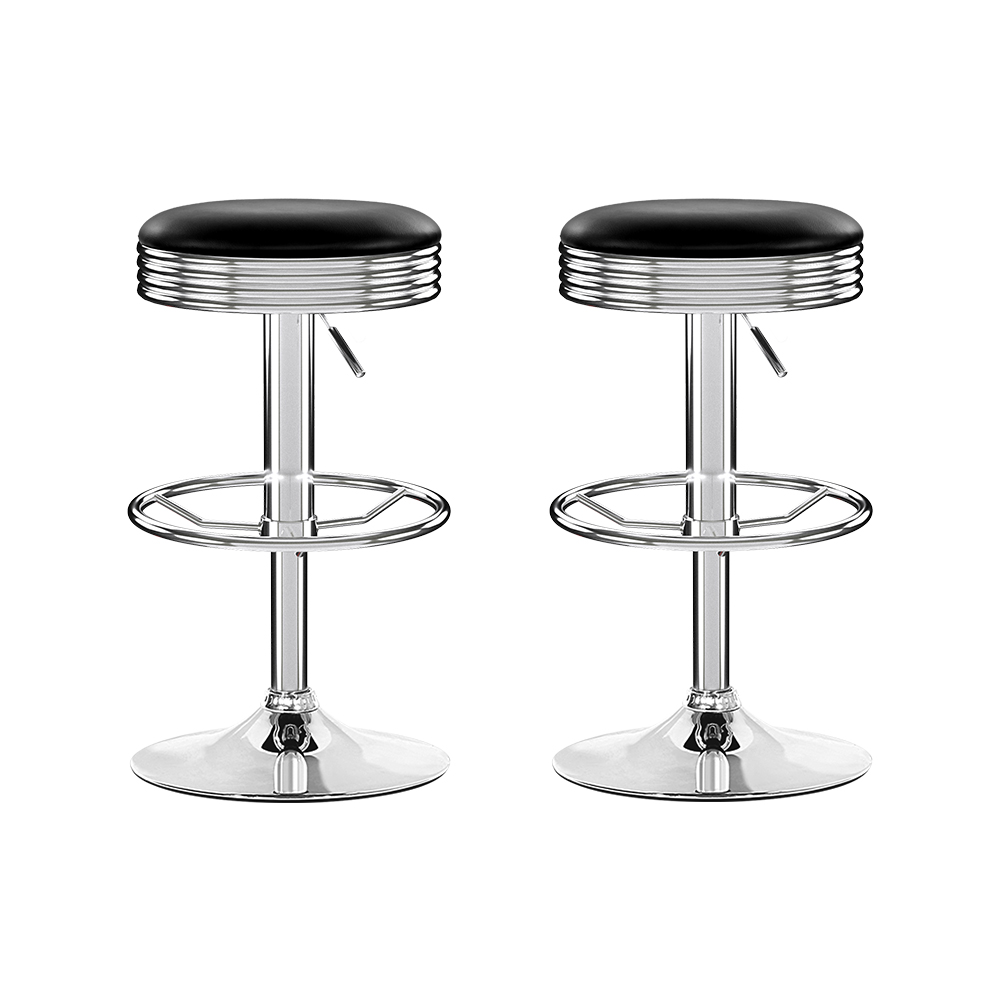 Set of 2 PU Leather Kitchen Bar Stools- Black