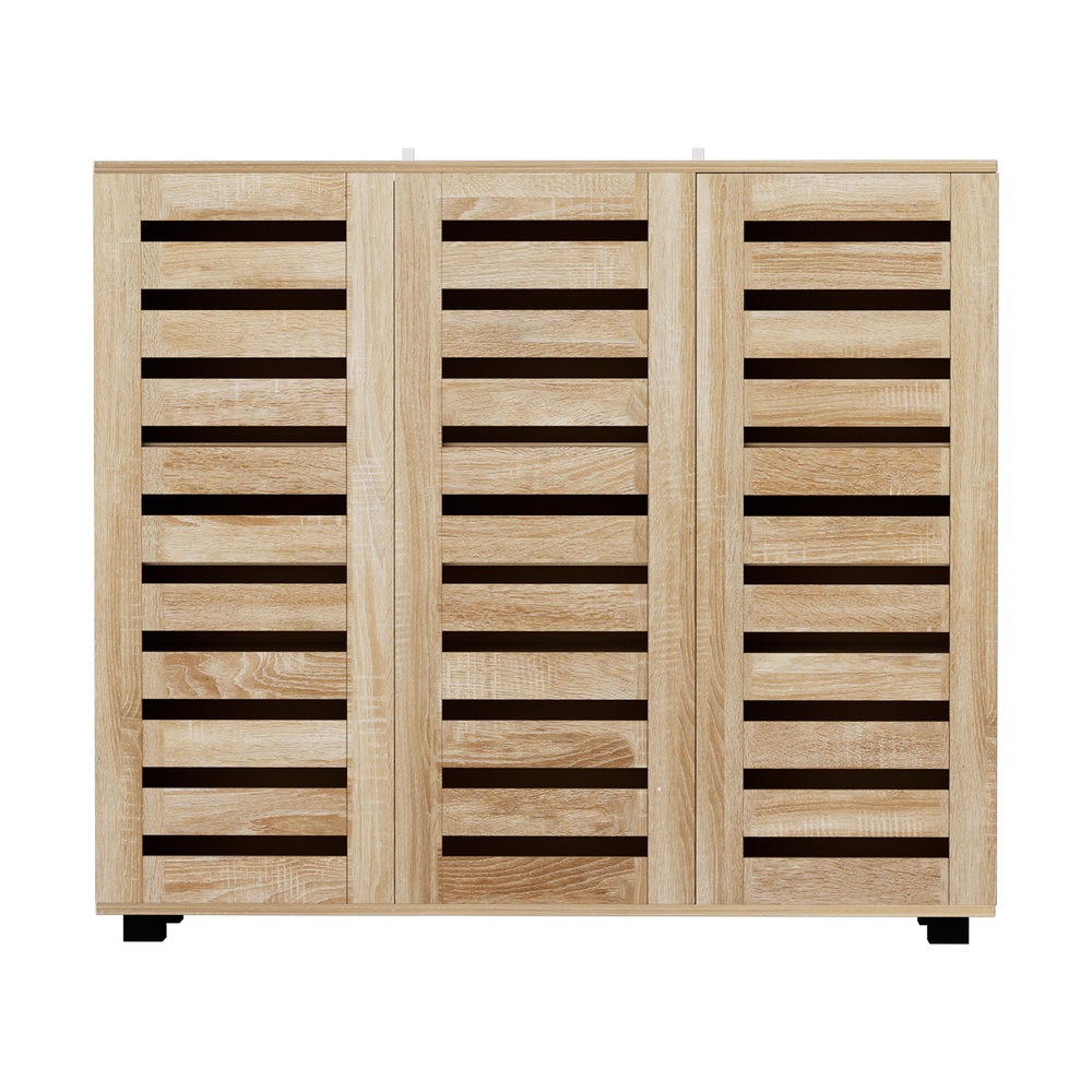 Discover seamless organisation with our Artiss Alster Shoe Cabinet. Featuring durable construction, a melamine finish, and three compartments of storage space for up to 30 pairs of shoes, it marries style with functionality – transforming clutter into a tastefully organised display in your entryway. With five storage tiers and three adjustable shelves, you can accommodate all different types of shoes and other accessories. The ventilated doors are perfect to encourage proper airflow and prevent mould and mildew, and they’re set on heavy-duty hinges and magnetic door fittings for long-lasting use. Best of all, you purchase includes an anti-tip kit for safety. Enjoy your new organised and tidy hallway with the Artiss Alster Shoe Cabinet.